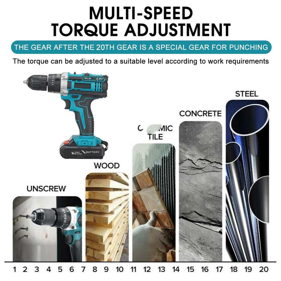 24V Cordless Drill 2x Battery Impact Electric Drill & Screwdriver with LED Light Power Tools Set