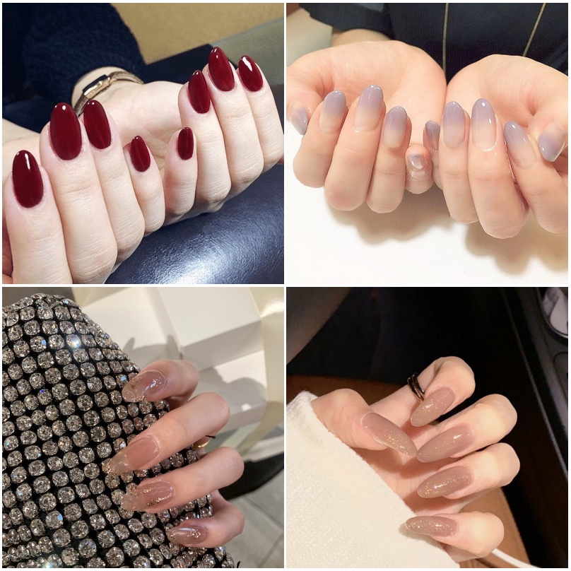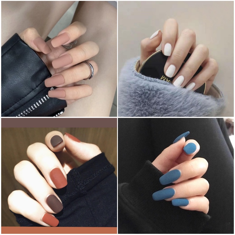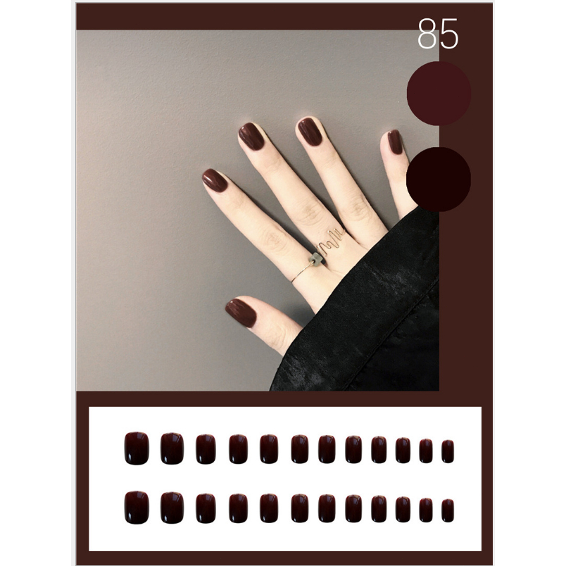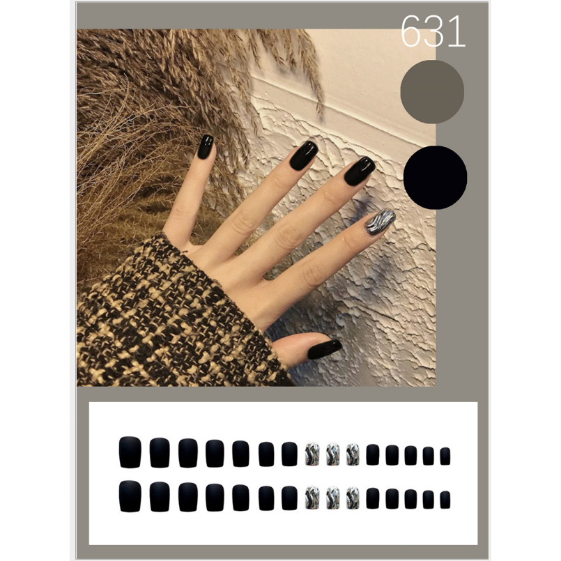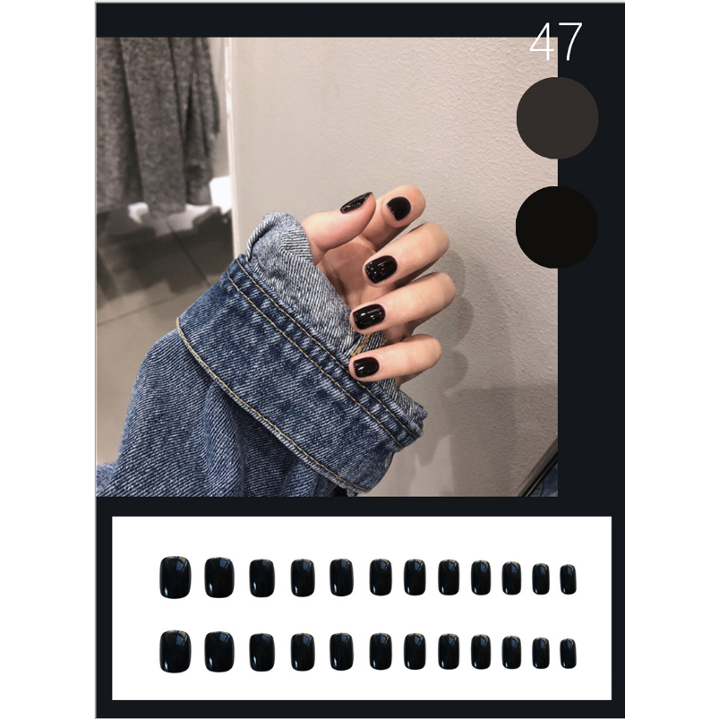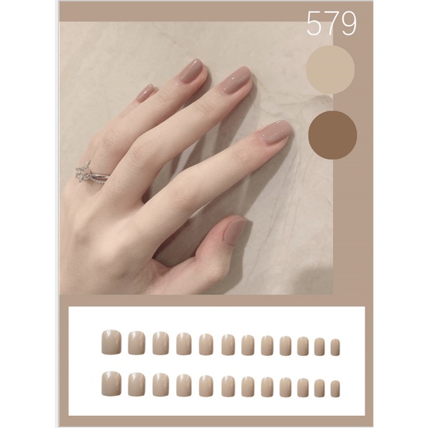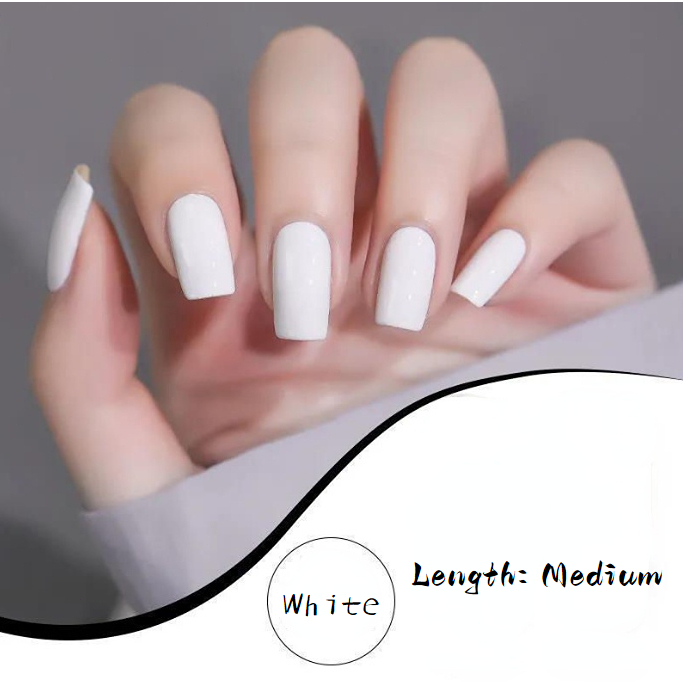 24pcs Fake Nails Flesh Color Fake Nail Set with Glue Short Nails Long Square Fake Nails