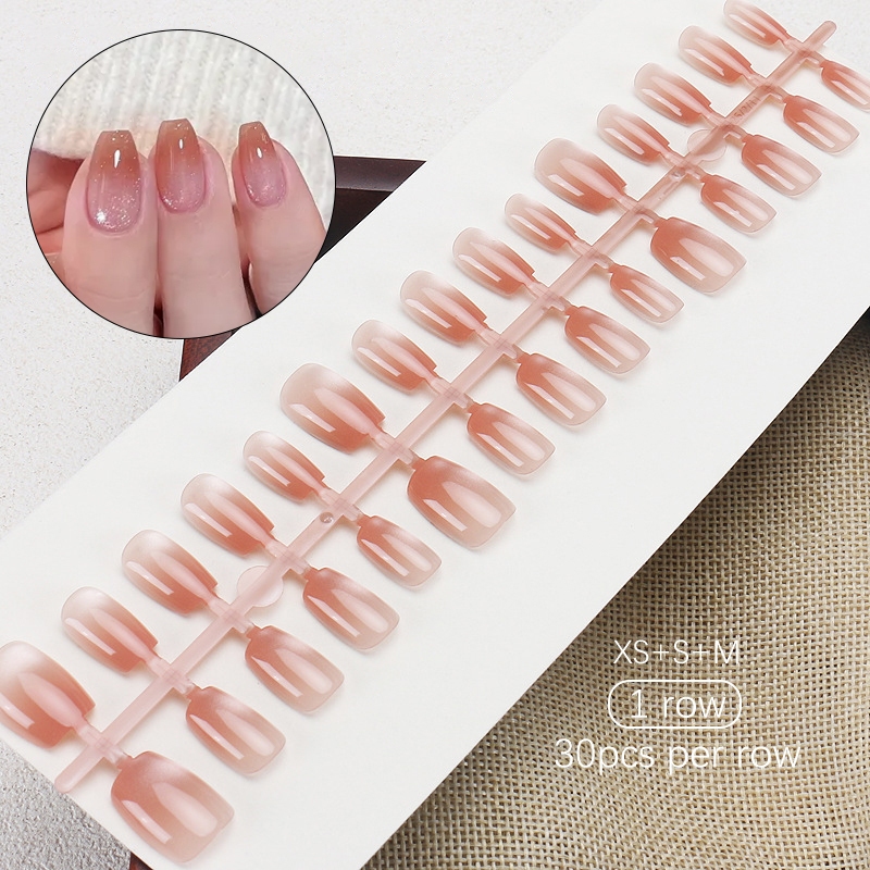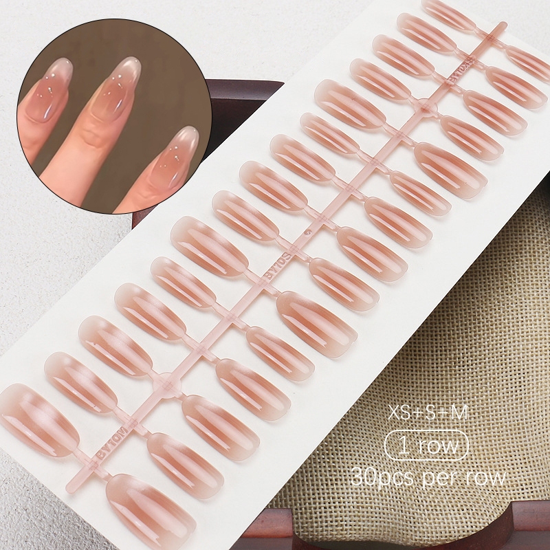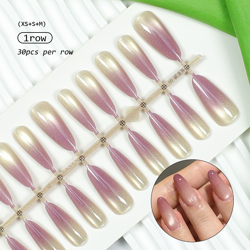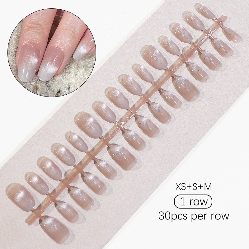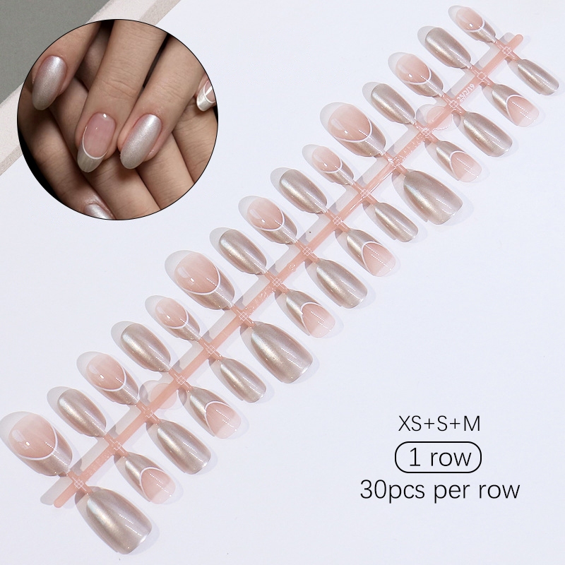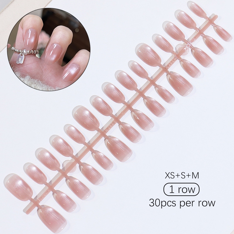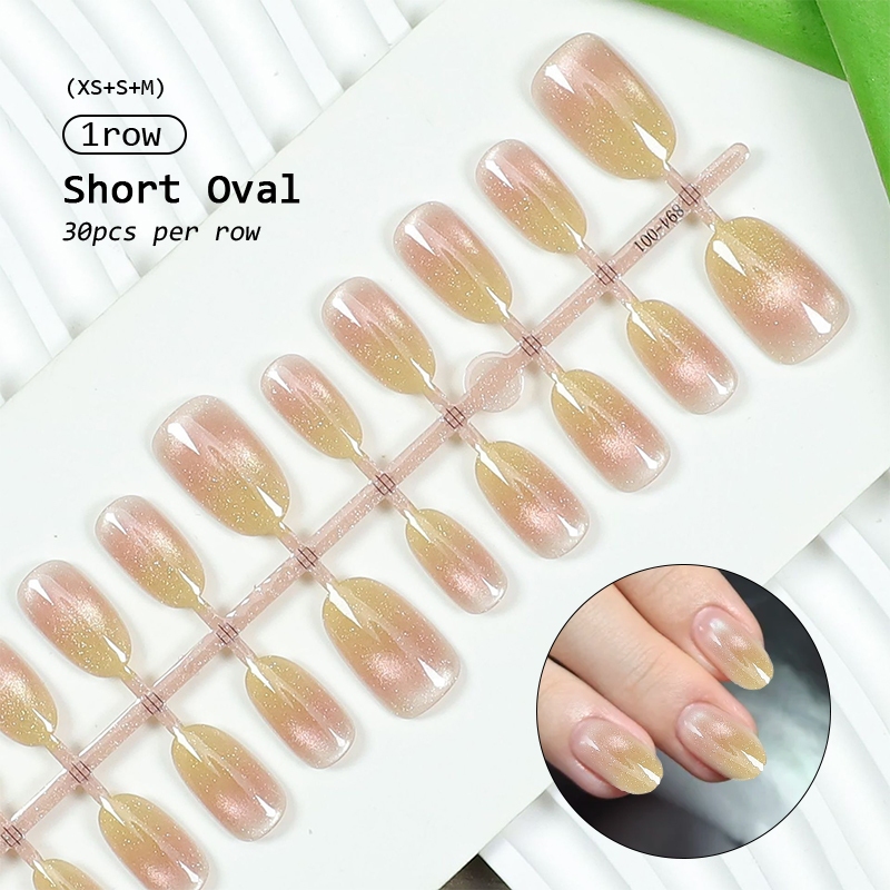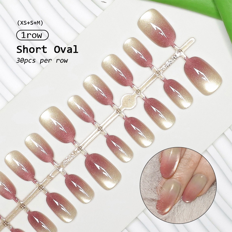 30pcs Short Round False Nails Aurora Sparkling Fake Nail Full Cover Cat Magnetic Glitter Press On Nail Tips