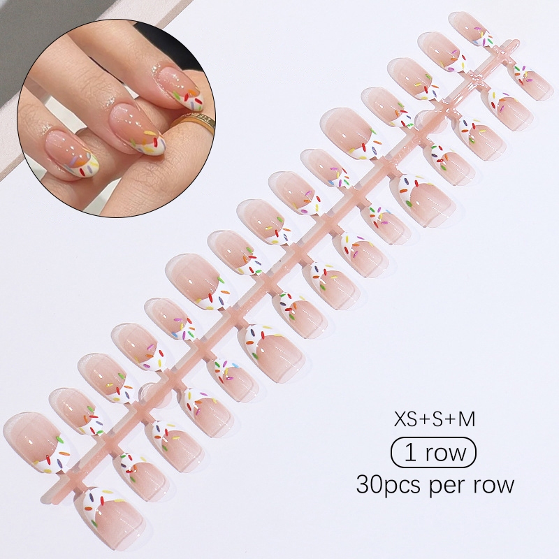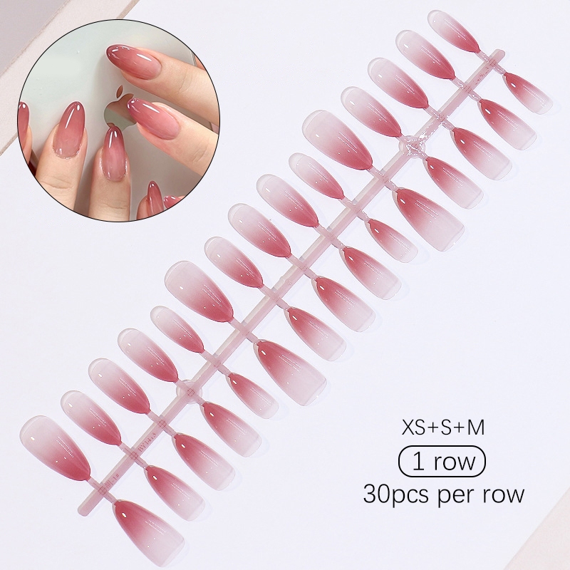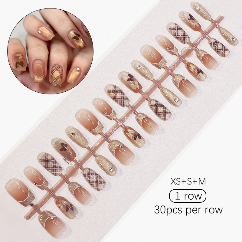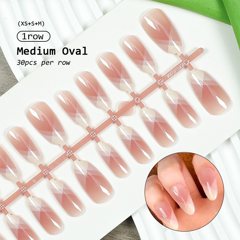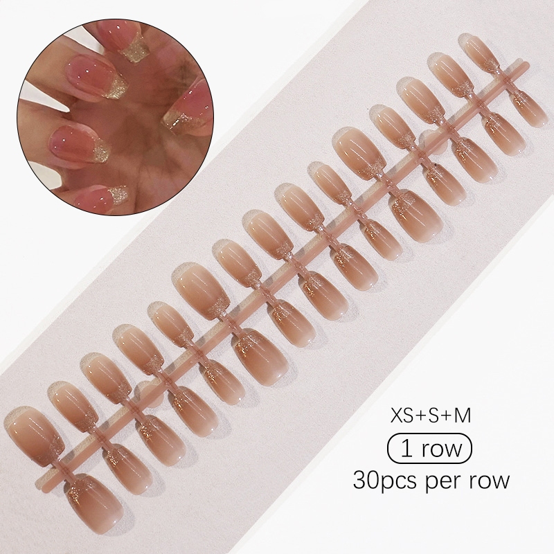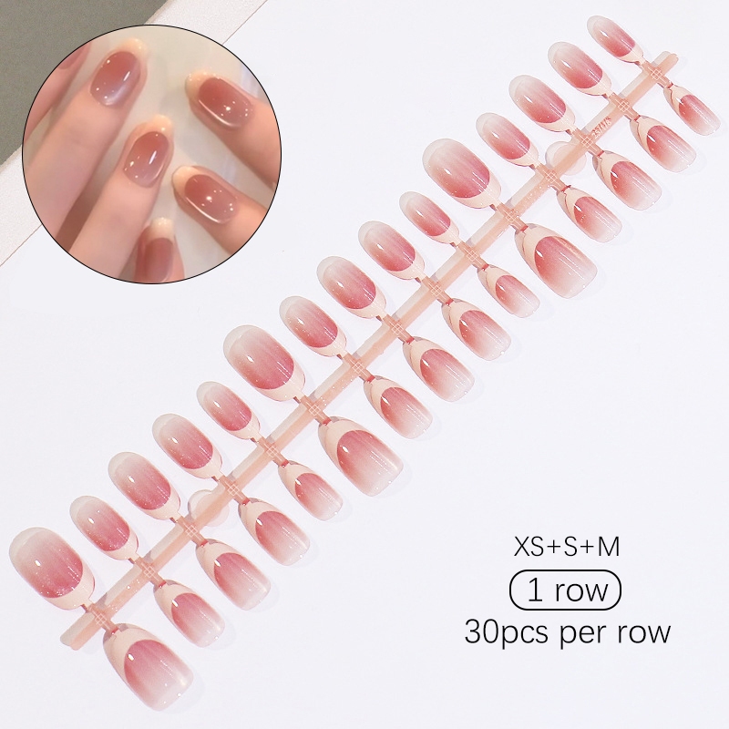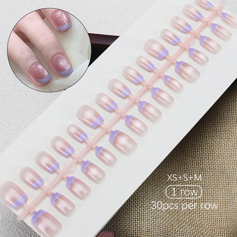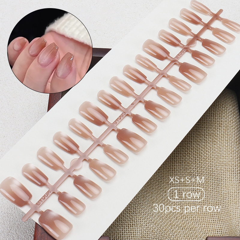30pcs Short Round False Nails Aurora Sparkling Fake Nail Full Cover Cat Magnetic Glitter Press On Nail Tips