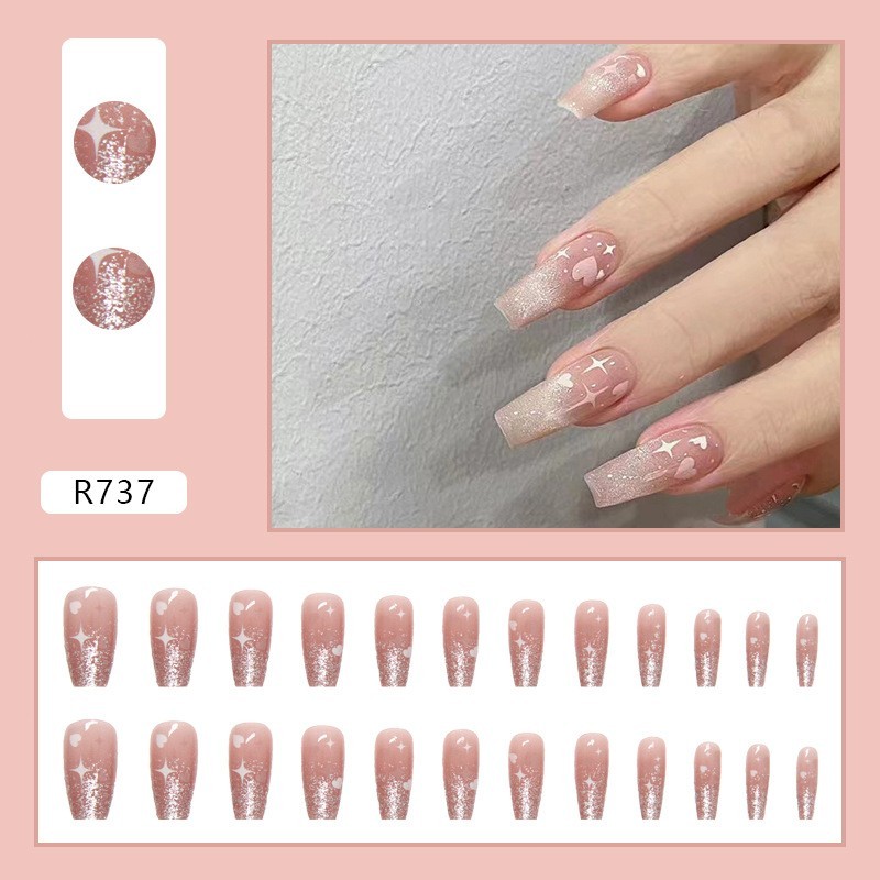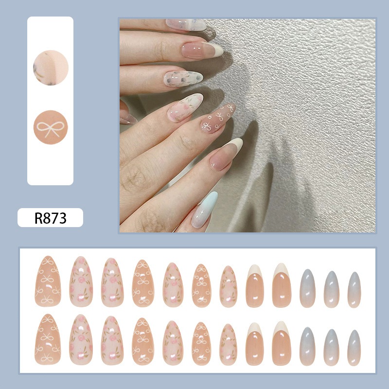 24pcs fake nails with glue light green fake nails short nail art design french false nails