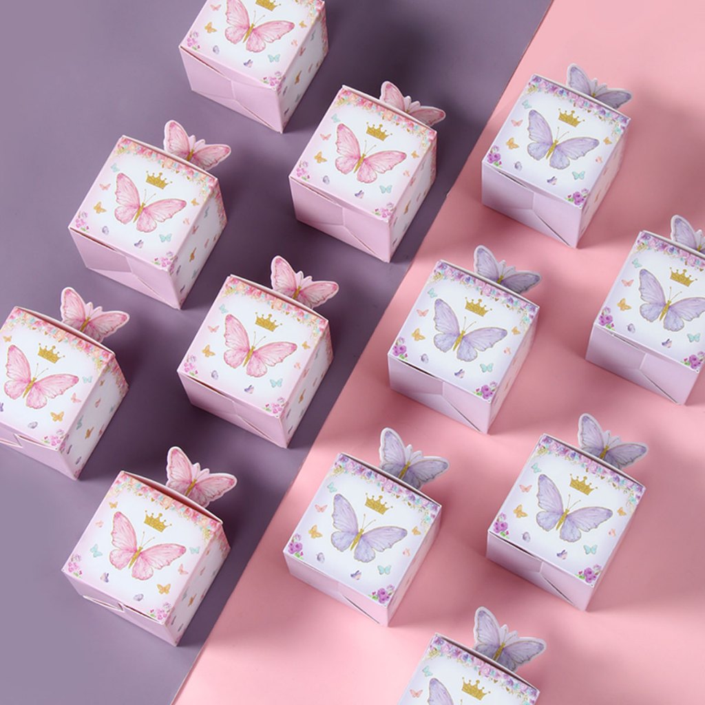24pcs/set Butterfly Candy Boxes Purple Pink Butterfly Design Paper Cookies Box Happy Birthday Candy Box Wedding Decoration Chocolate Boxes Girls Birthday Baby Shower Party Supplies