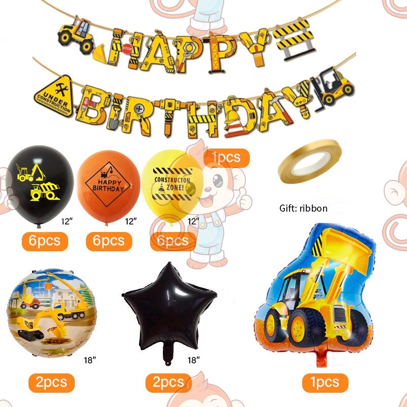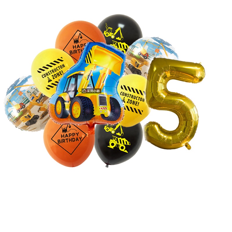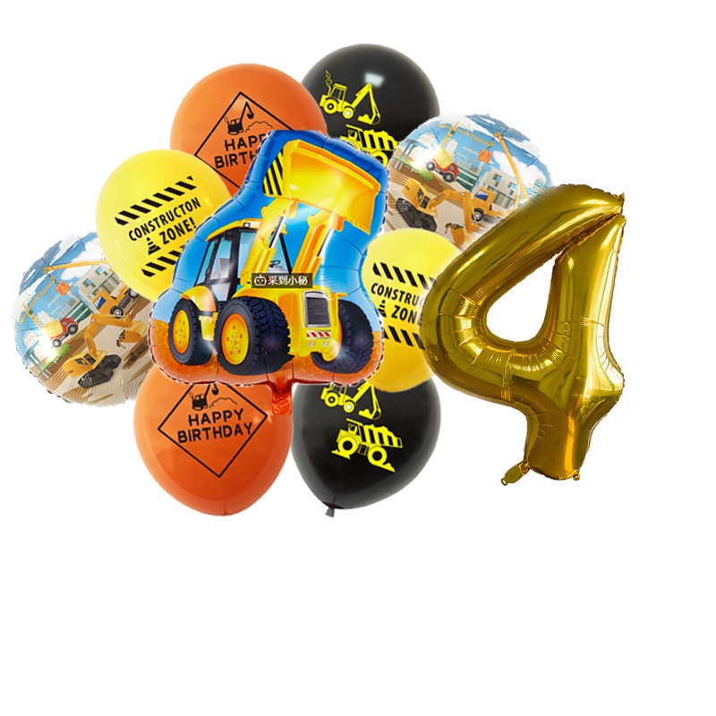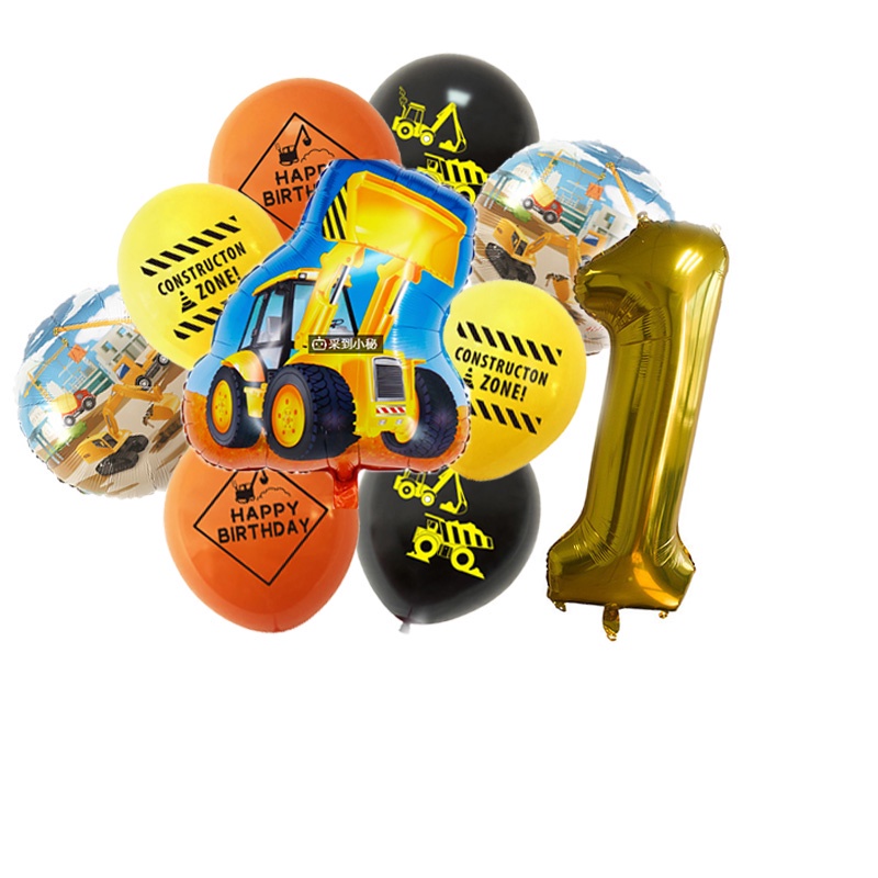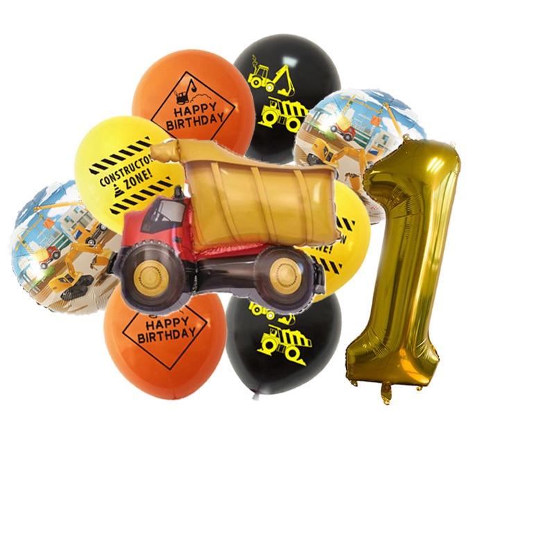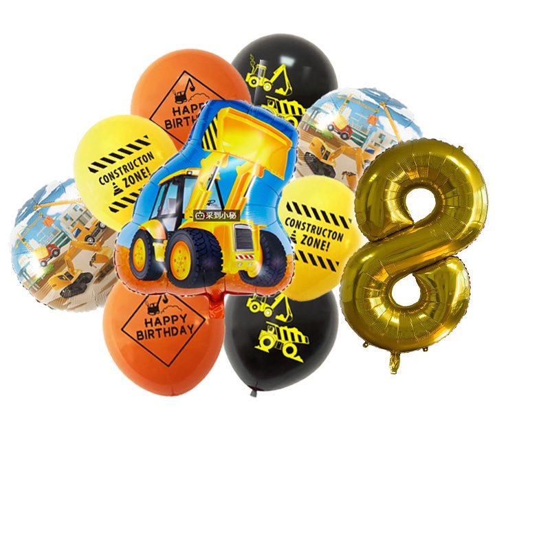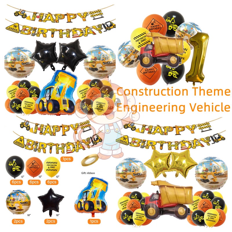 24pcs/set Construction Party Decoration Set Traffic Engineering Vehicle Latex Balloon Pull Flag Set Ballons Party Needs