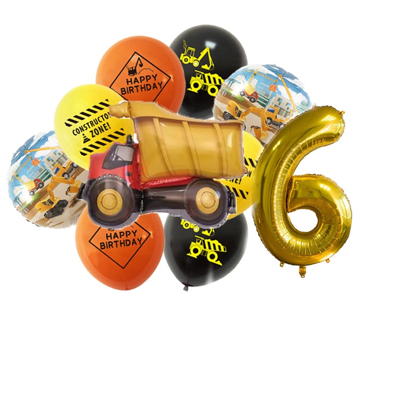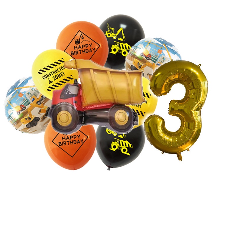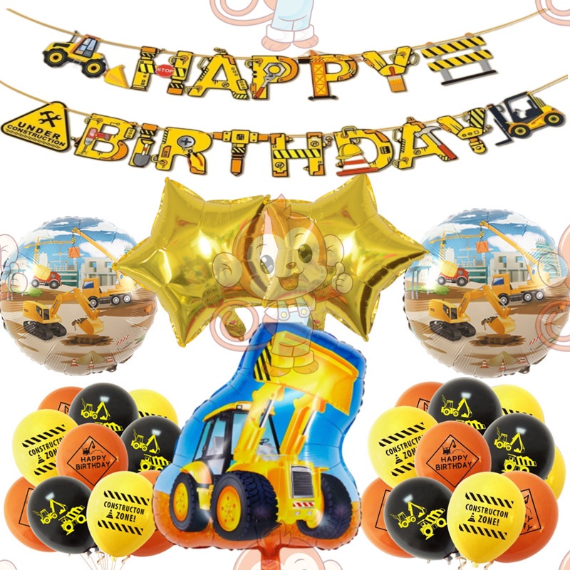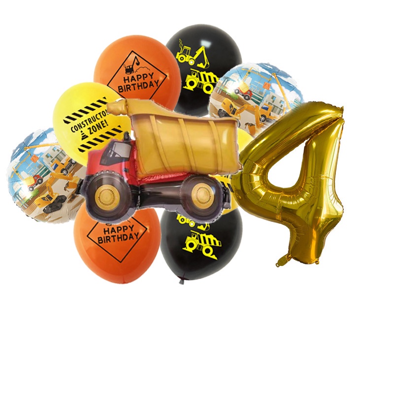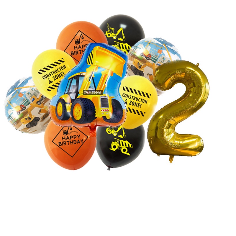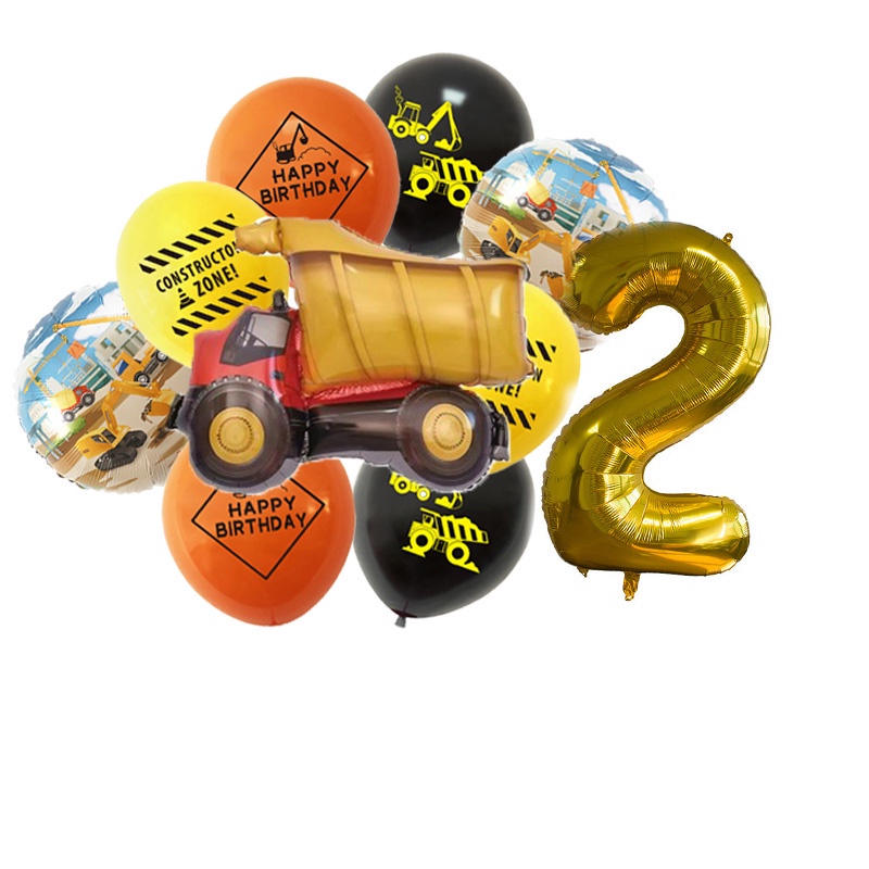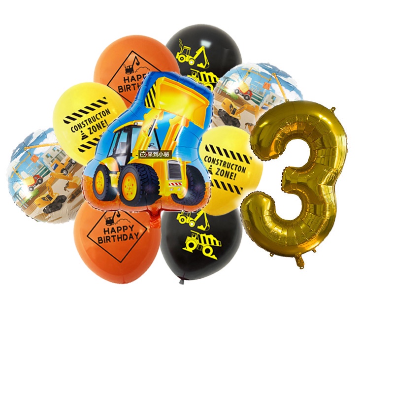 24pcs/set Construction Party Decoration Set Traffic Engineering Vehicle Latex Balloon Pull Flag Set Ballons Party Needs