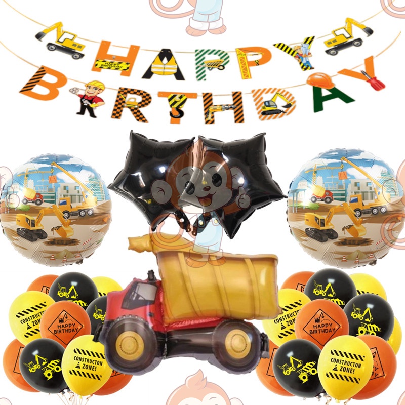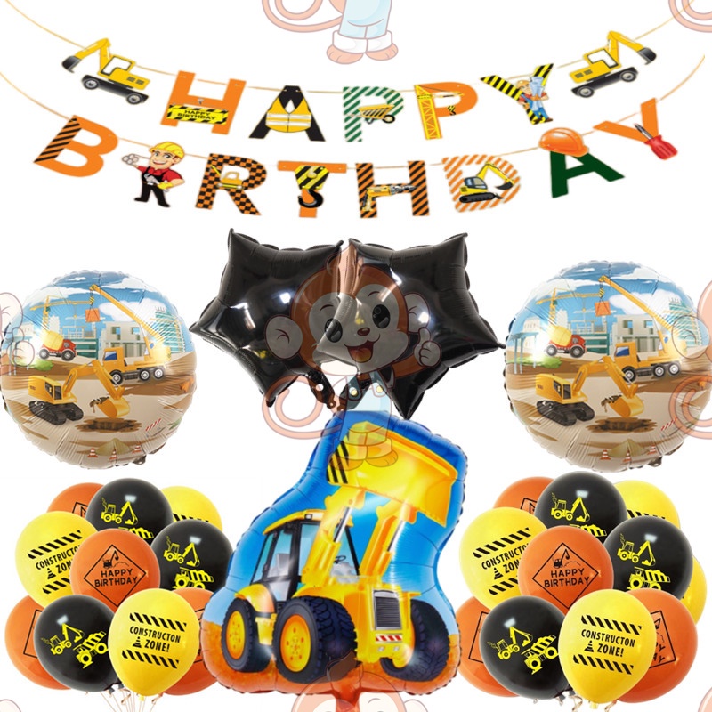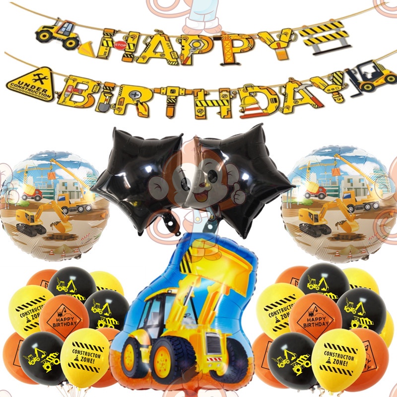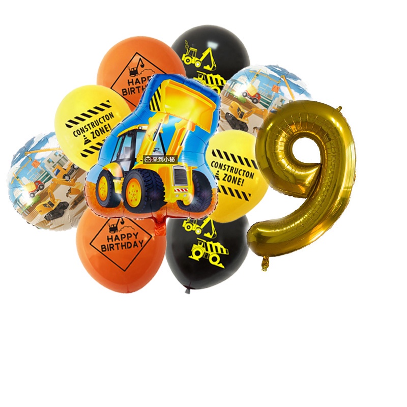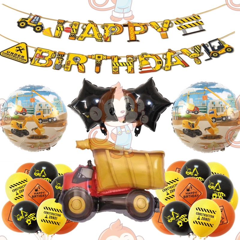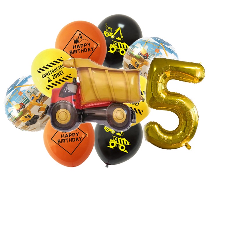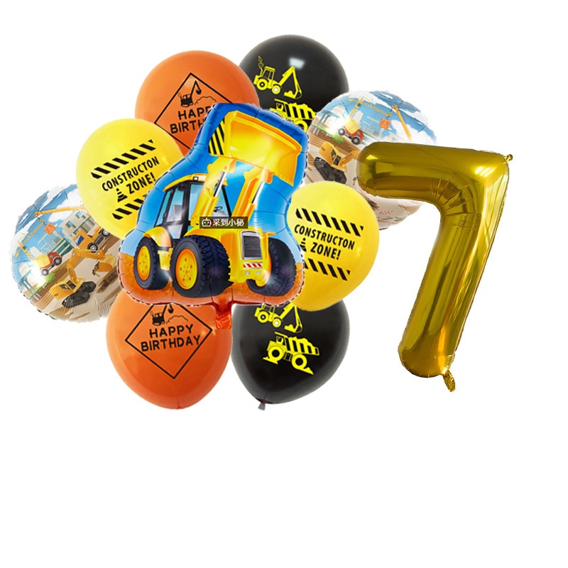 24pcs/set Construction Party Decoration Set Traffic Engineering Vehicle Latex Balloon Pull Flag Set Ballons Party Needs