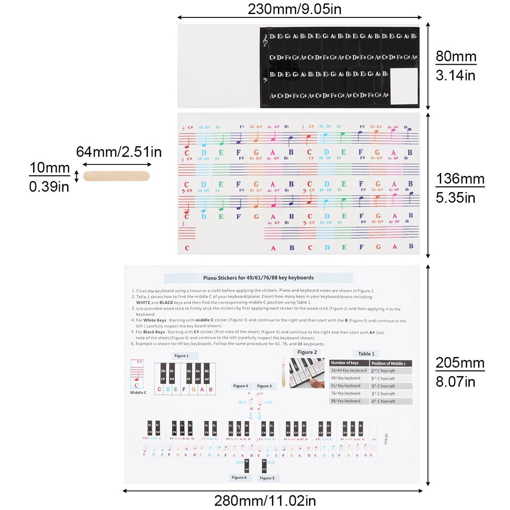 25 / 49 / 54 / 61 / 88 Colorful Transparent Piano Keyboard Stickers Electronic Keyboard Key Piano Stave Note Sticker Symbol