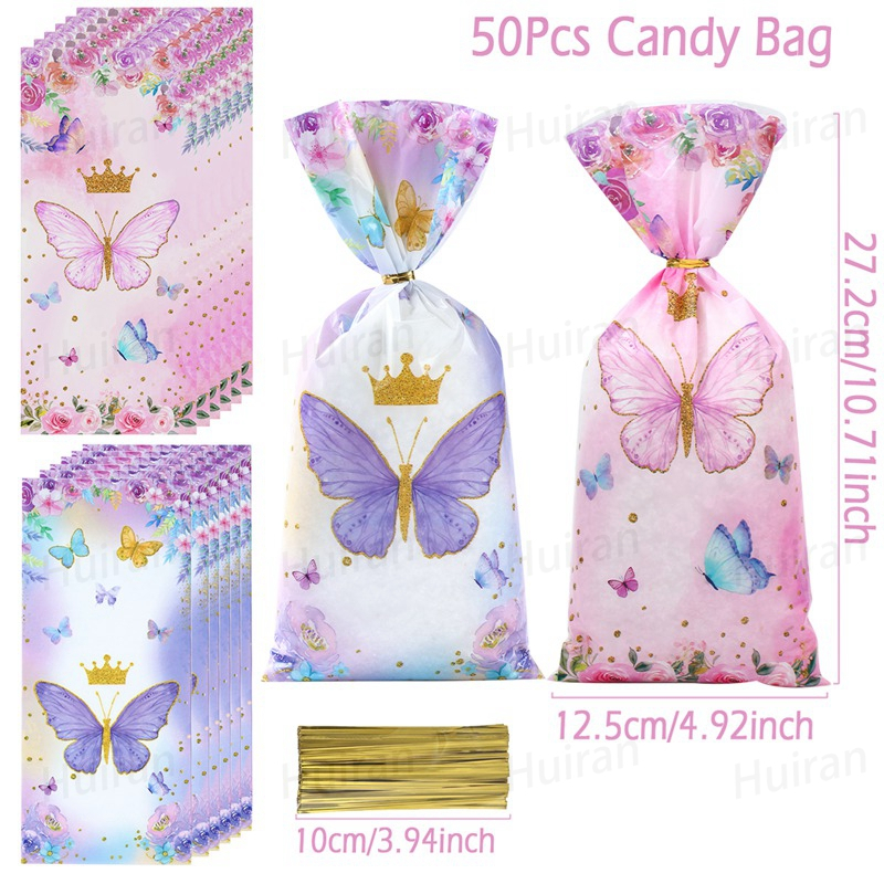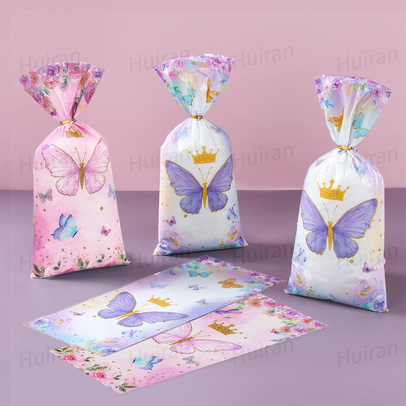 25/50/100pcs Pink Butterfly Theme loot bag with Twist Purple Butterfly PE Gift Bag Loot Bags For Birthday Souvenir Giveaway Plastic Gift Bag Party Decorations Birthday Party Needs