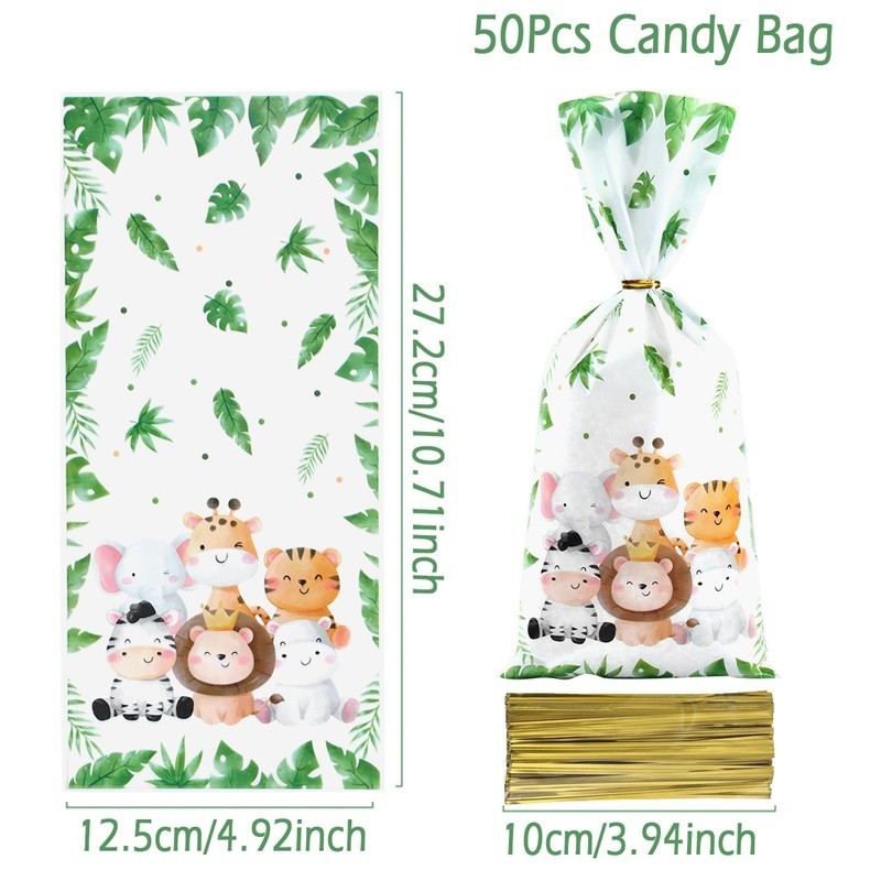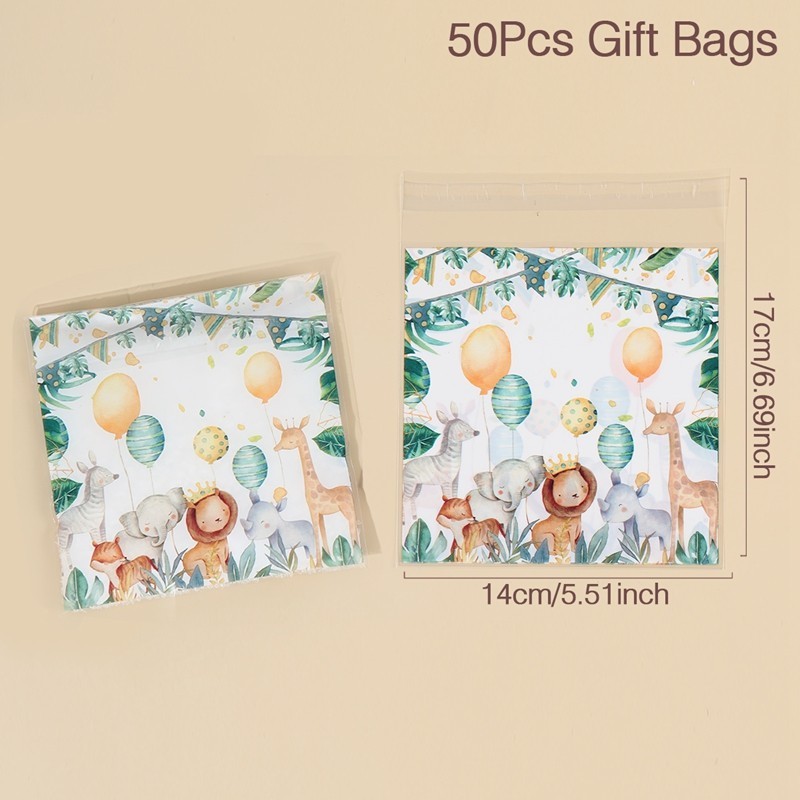25/50pcs Jungle Animal Rabbit Gift Bags Loot Bag Safari Theme Candy Biscuit Packaging Bag Safari Theme Party Decorations Happy Birthday Party Supplies Kids Baby Shower DIY Gift Bags Loot Bags For Birthday