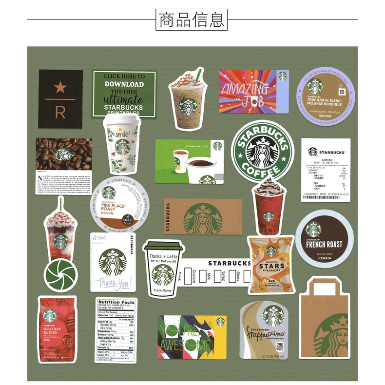 25 PCS Retro Starbucks Stickers for Laptop Phones Ipad Luggage Personality Trends Decorative Stickers Waterproof