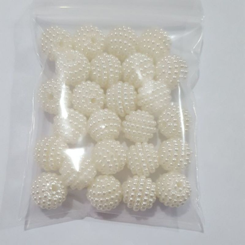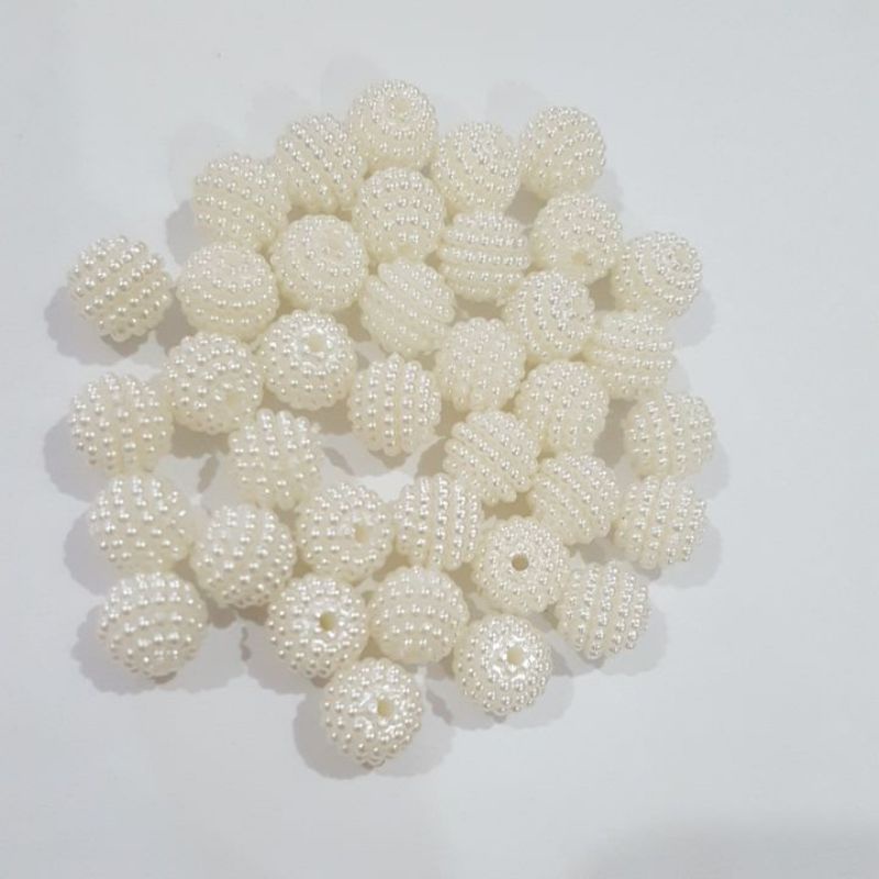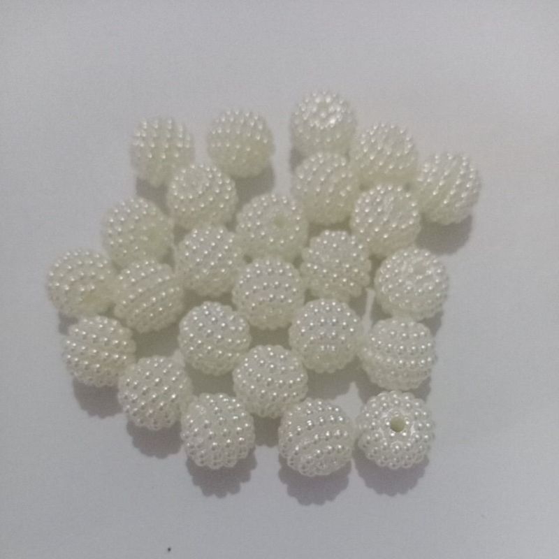 25 Pieces 10MM Ivory/White Pearl Pave shape Acrylic Beads