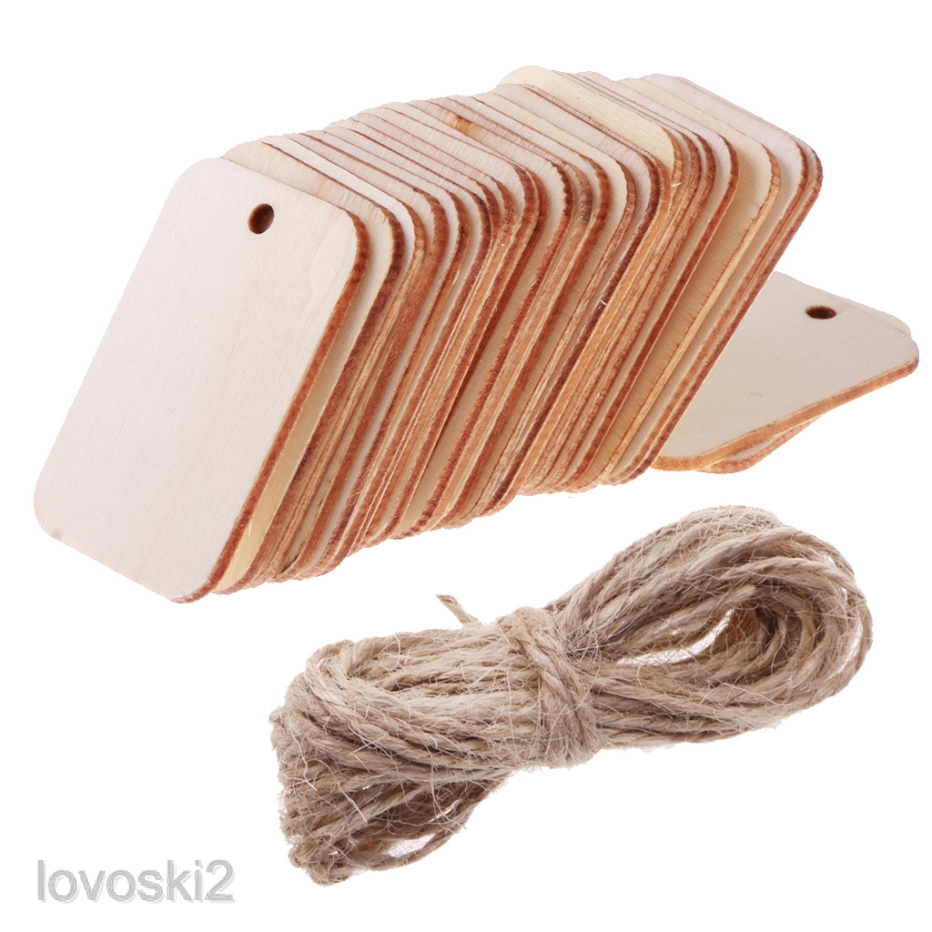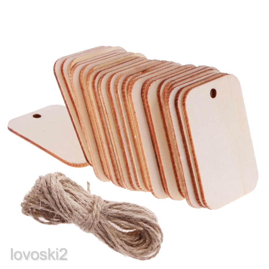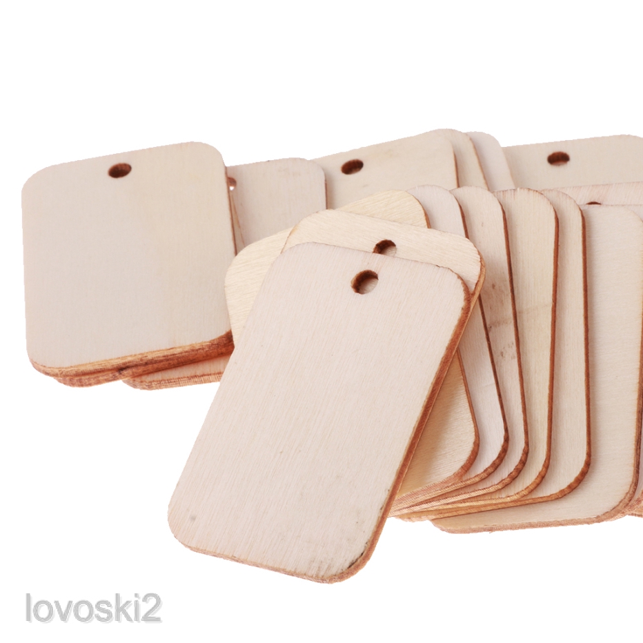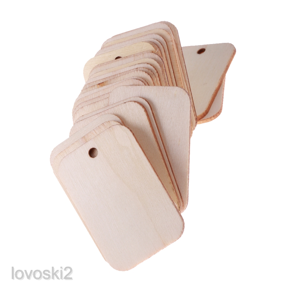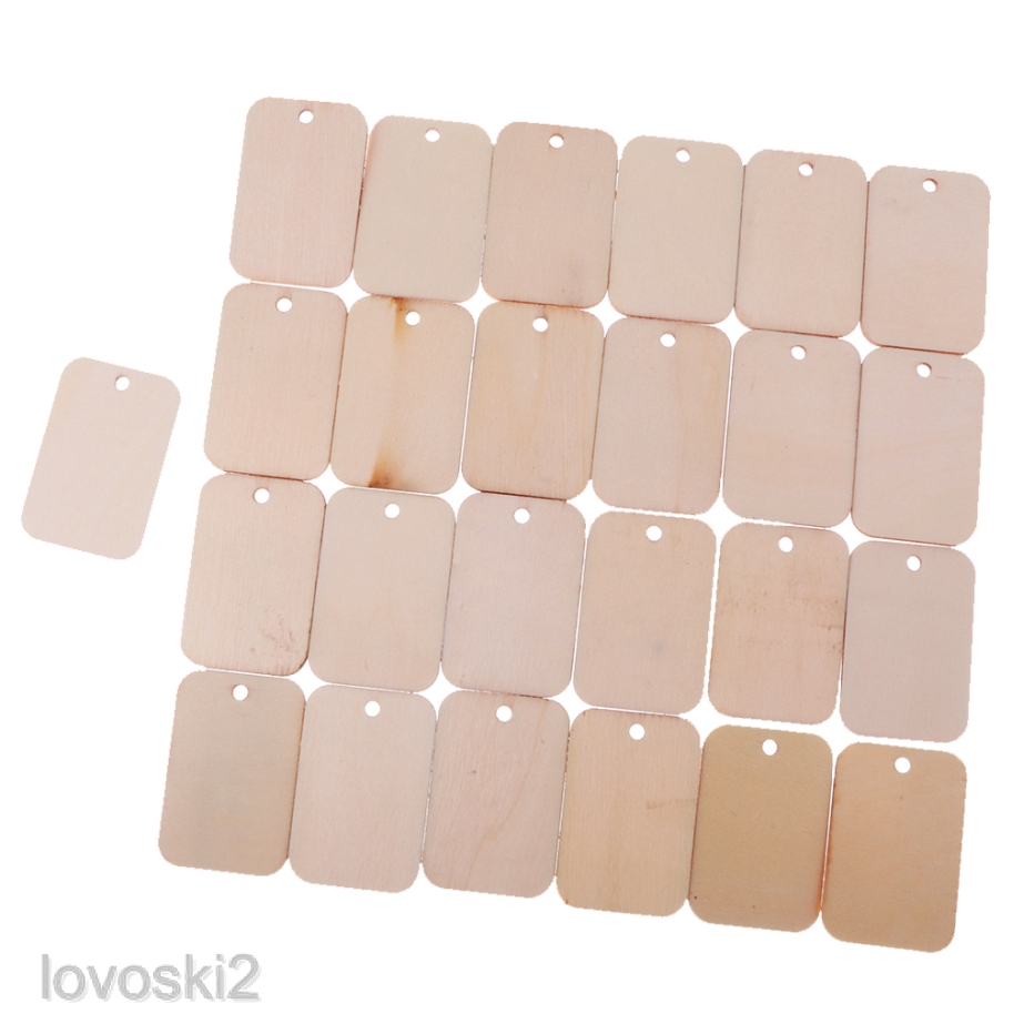 25 Wooden Label Unfinished Rectangle Blank Wood Gift Tags for Wedding Party