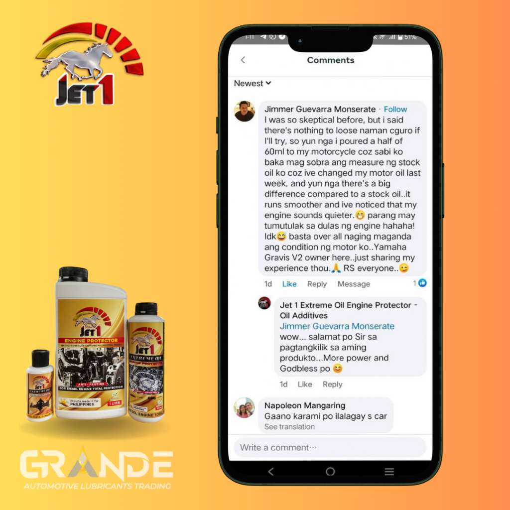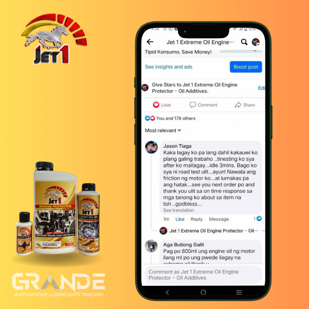 250 ml Jet 1 Extreme Engine Oil Lube additives Enhancer Treatment Protector for AUTO, SUVs SEDAN, PU