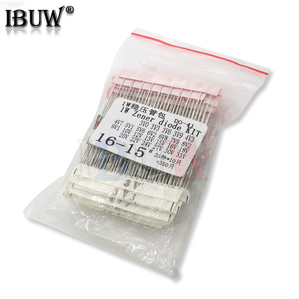 250Pcs 1W Zener Diode Assorted kit 3V ~ 33V Assortment Set 25ValuesX10PCS