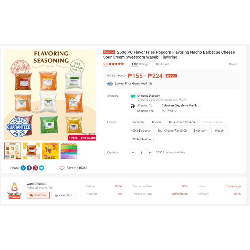 250g PC Fries Flavoring Cheese Flavoring Barbecue Flavoring Sour Cream Flavor PC PotCor Flavor