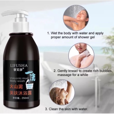250ml LIFUSHA Volcanic Mud Body Wash Whitening Shower Gel exfoliate whitening body wash