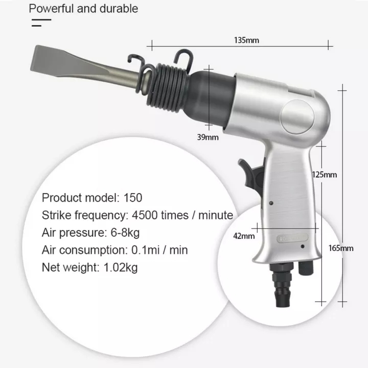 250mm Mini Air Shovel Gun with 4 Chisels Pneumatic Pistol Gas Hammer Handheld Rust Removel Tool