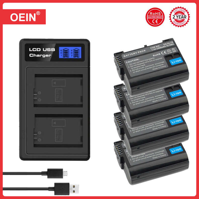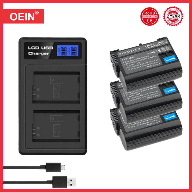 2550mAh EN-EL15C Bateria EN-EL15 Battery+LED Dual Charger for Nikon Z5,Z6,Z6 II,Z7,Z7II,Z8 D600 D6