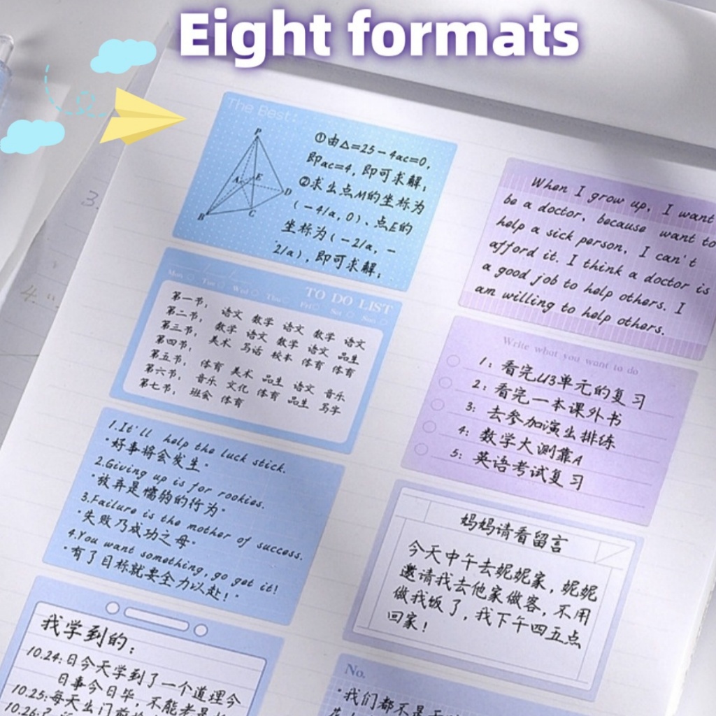 256Pcs Pull-out Memo Sticky Notes 8 Format Tearable Sticker Adhesive Marking DIY Decoration Sticker