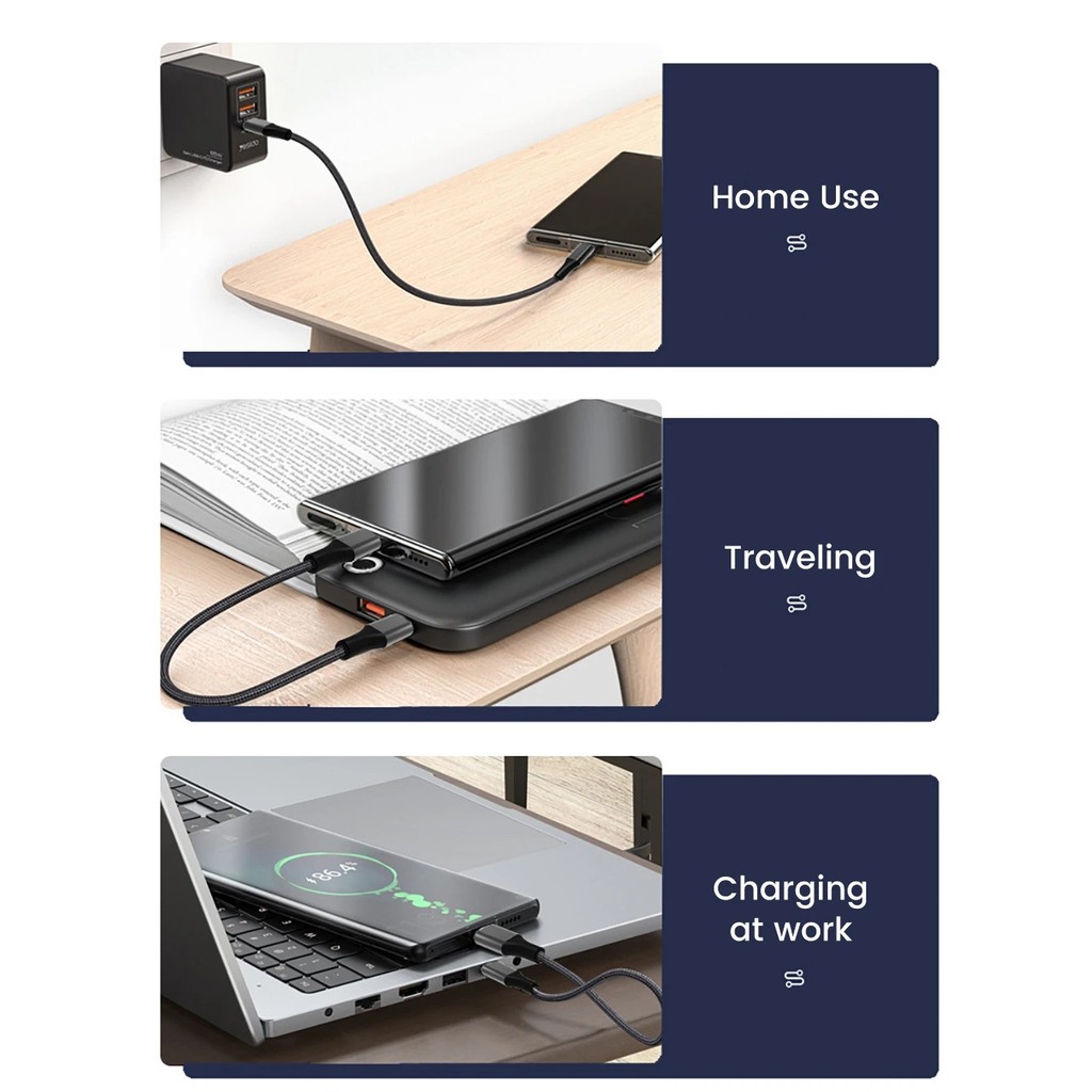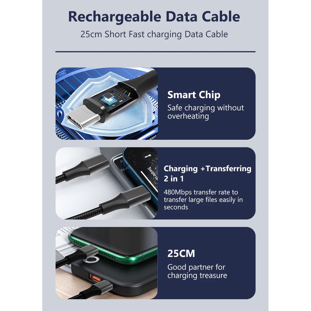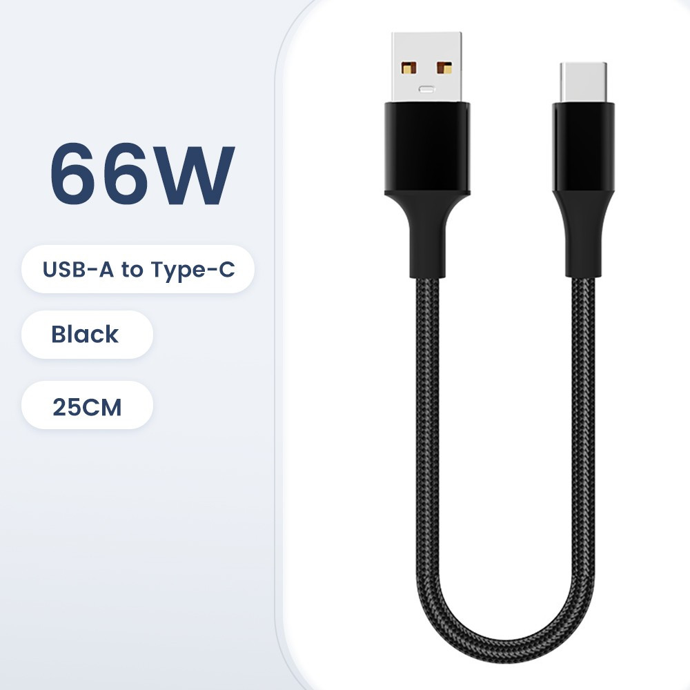 25CM Type C USB Data Cable 66W for Samsung PD30W USB C Fast Charging Data Cord 3A Short Portable Power Bank Charge Cord
