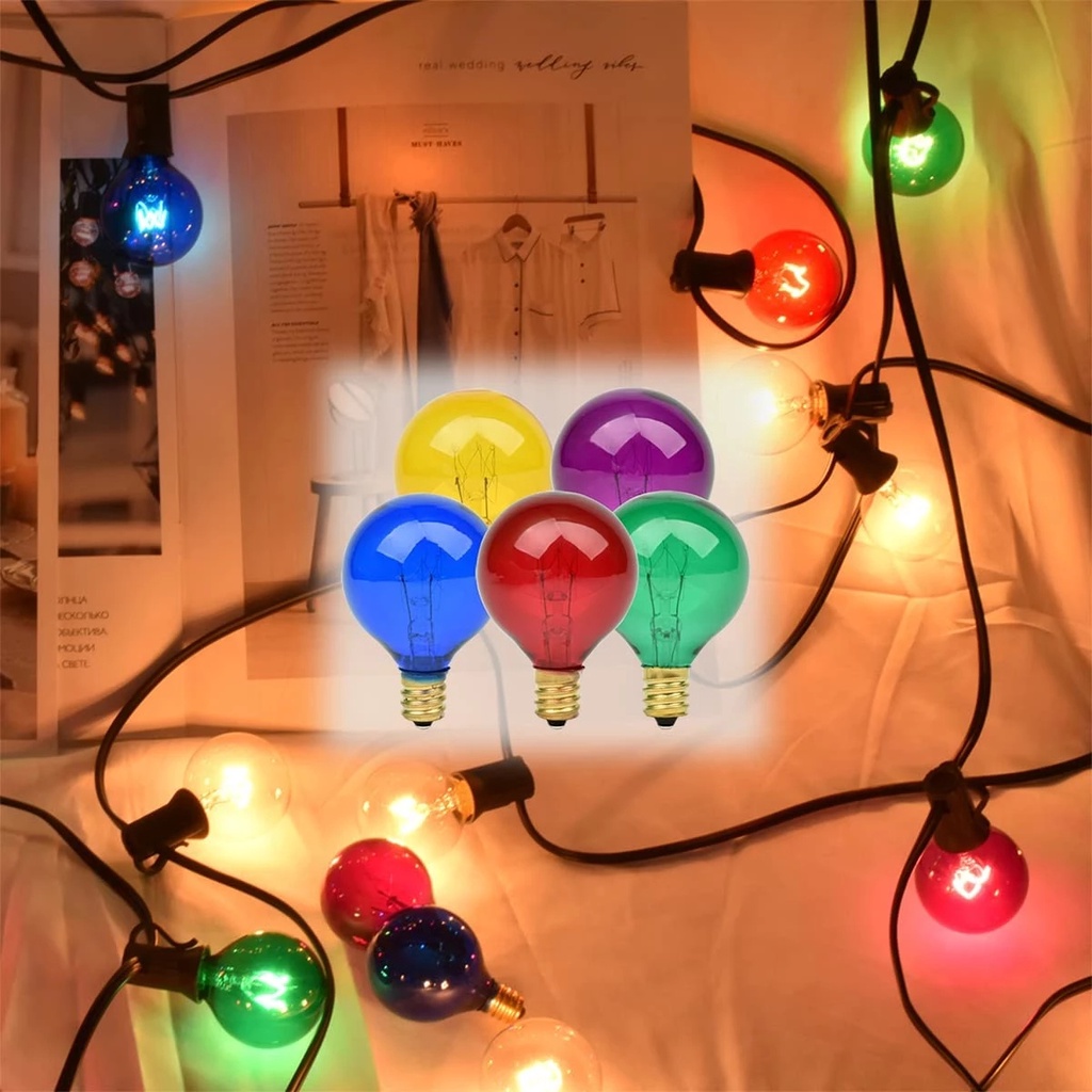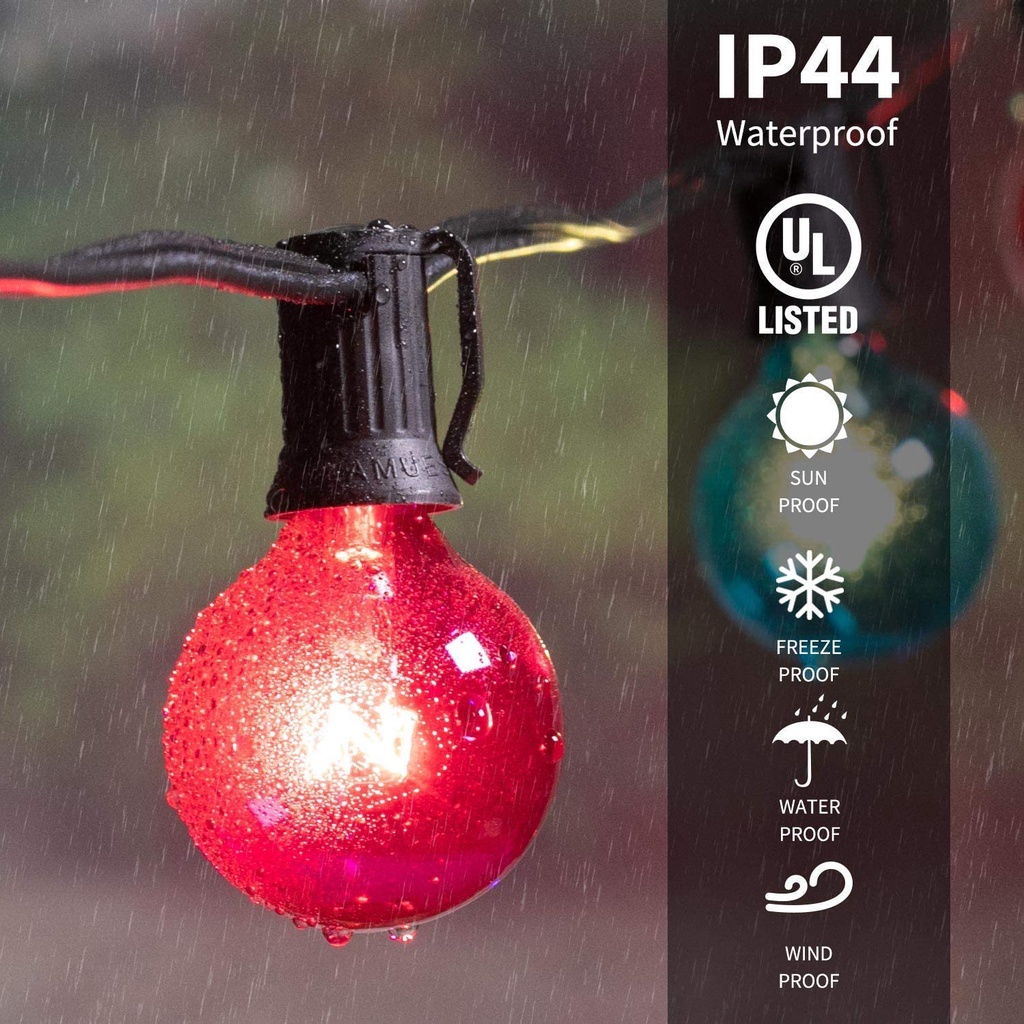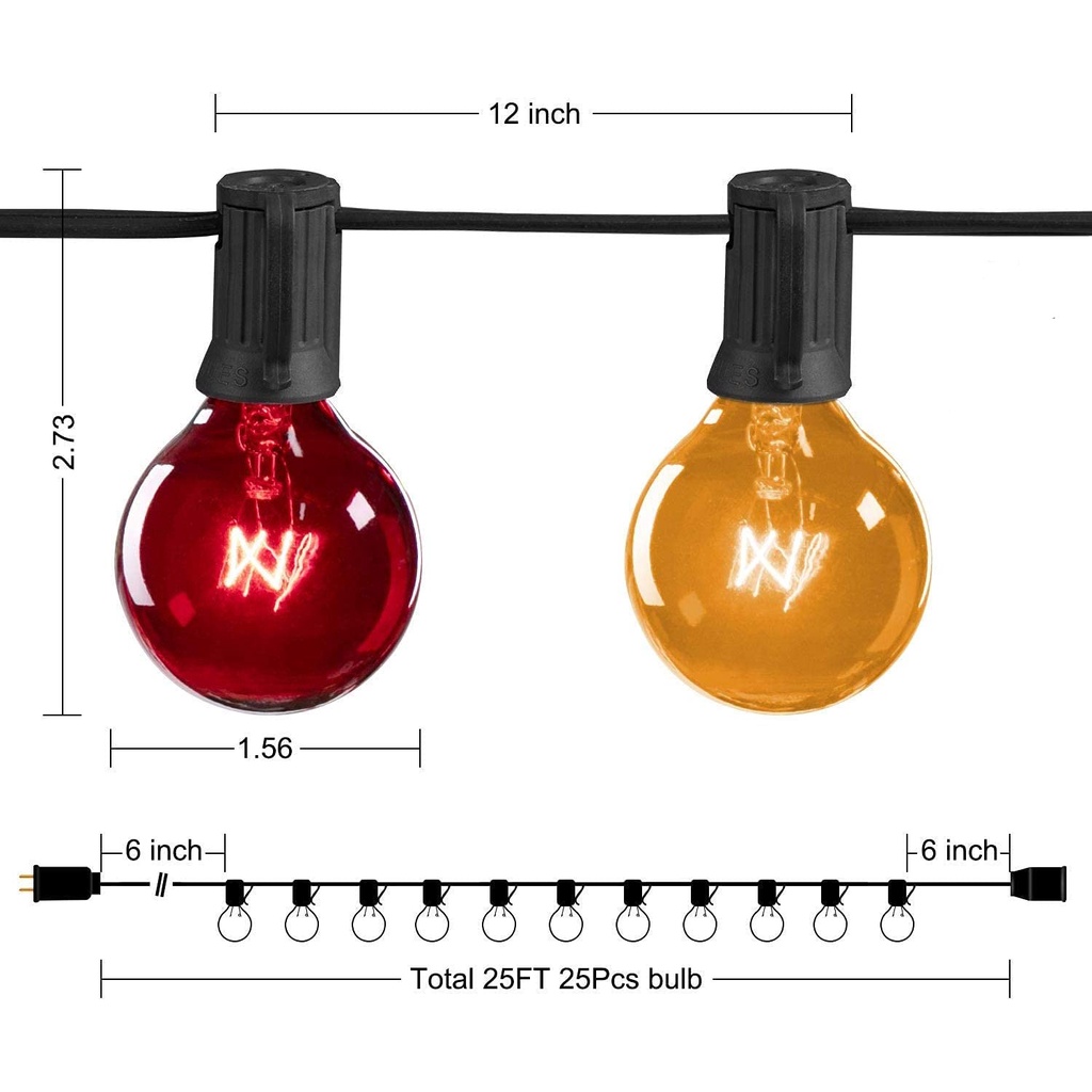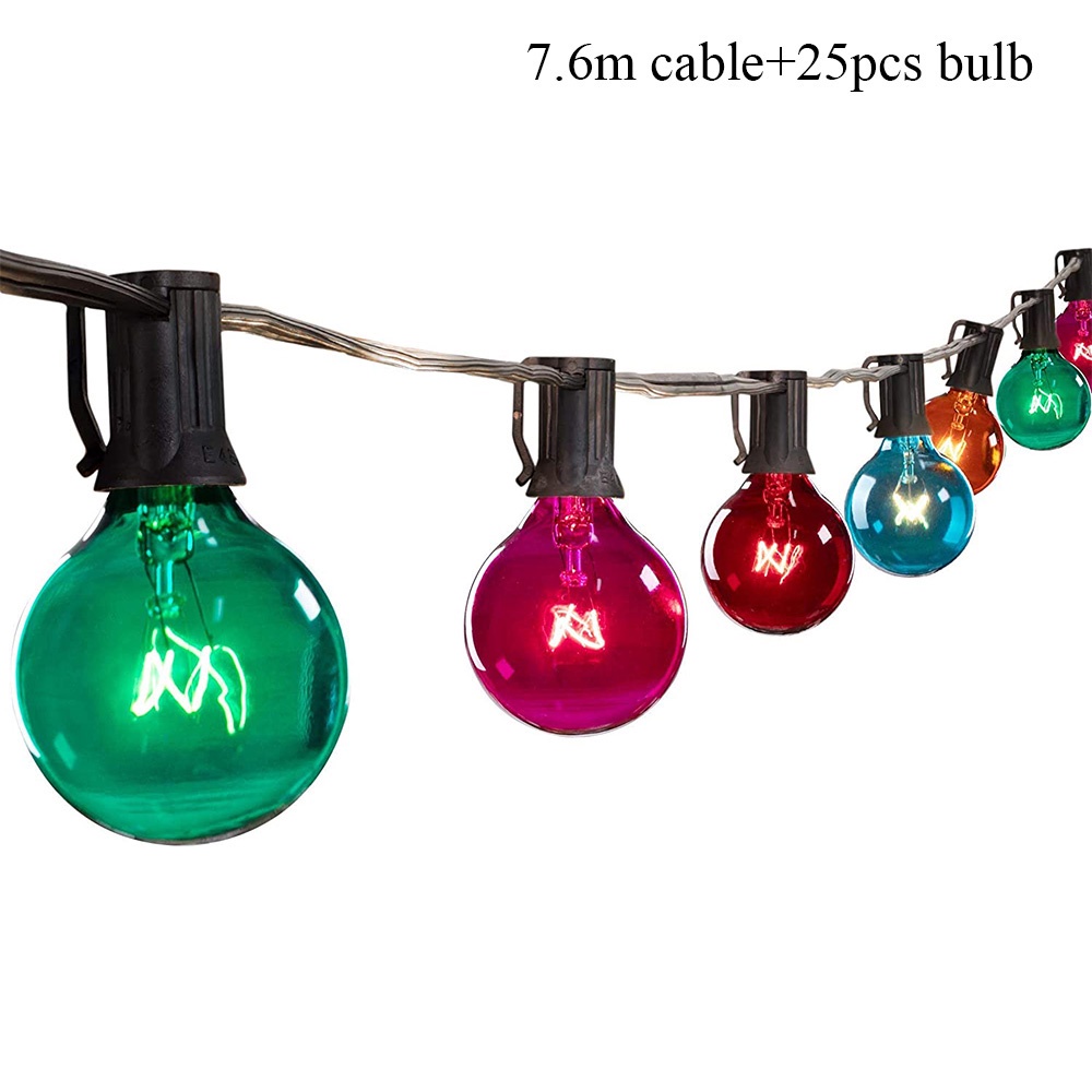 25Ft G40 Outdoor Patio Color String Light Waterproof 7W RGB Ball Bulb Fairy Lights Backyard Christmas Garden Decoration Lighting