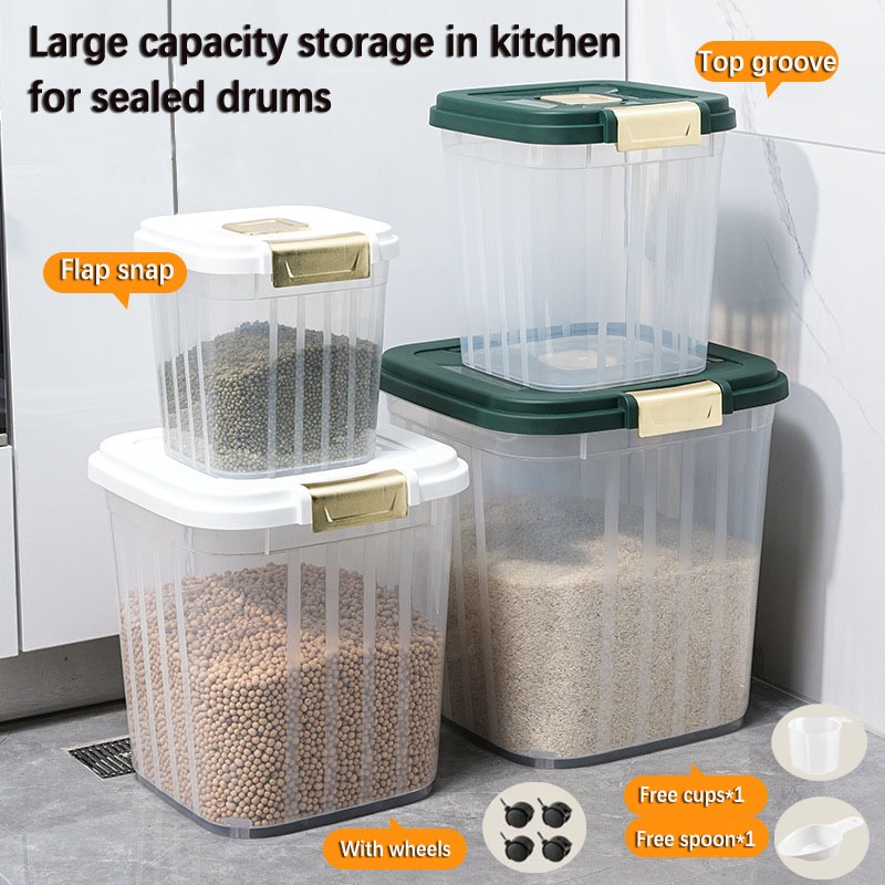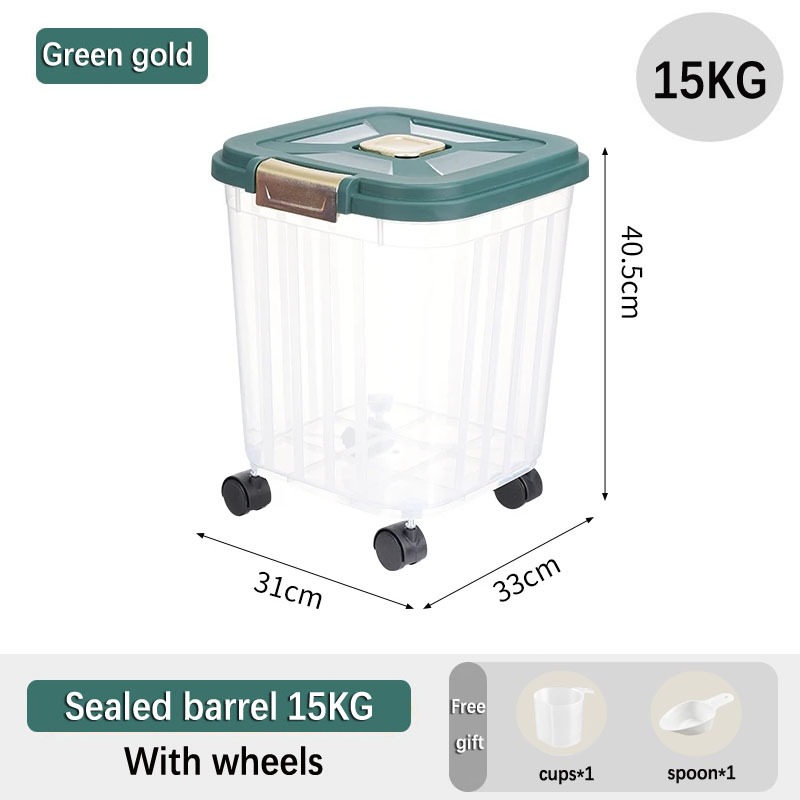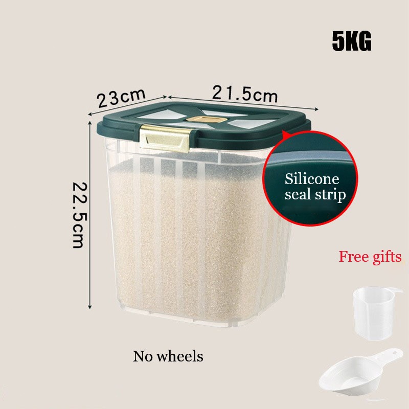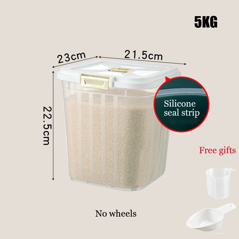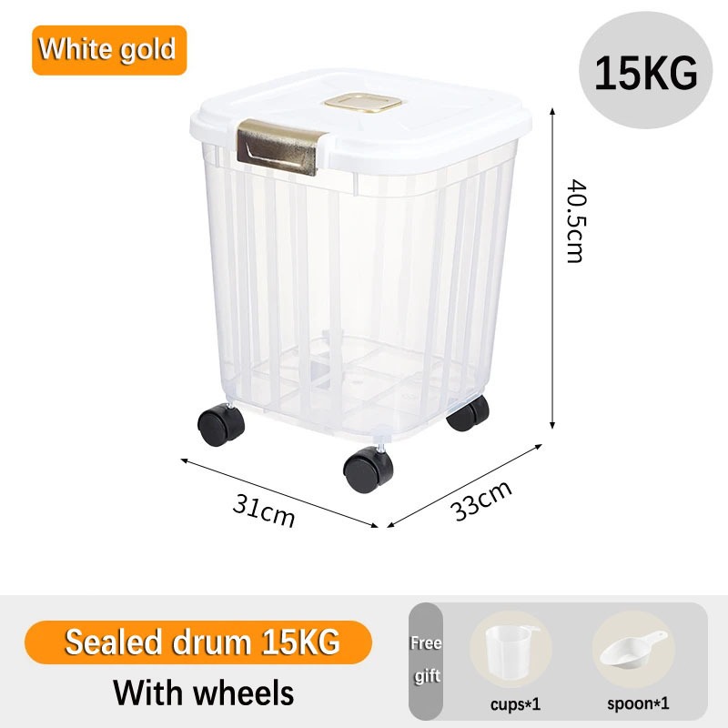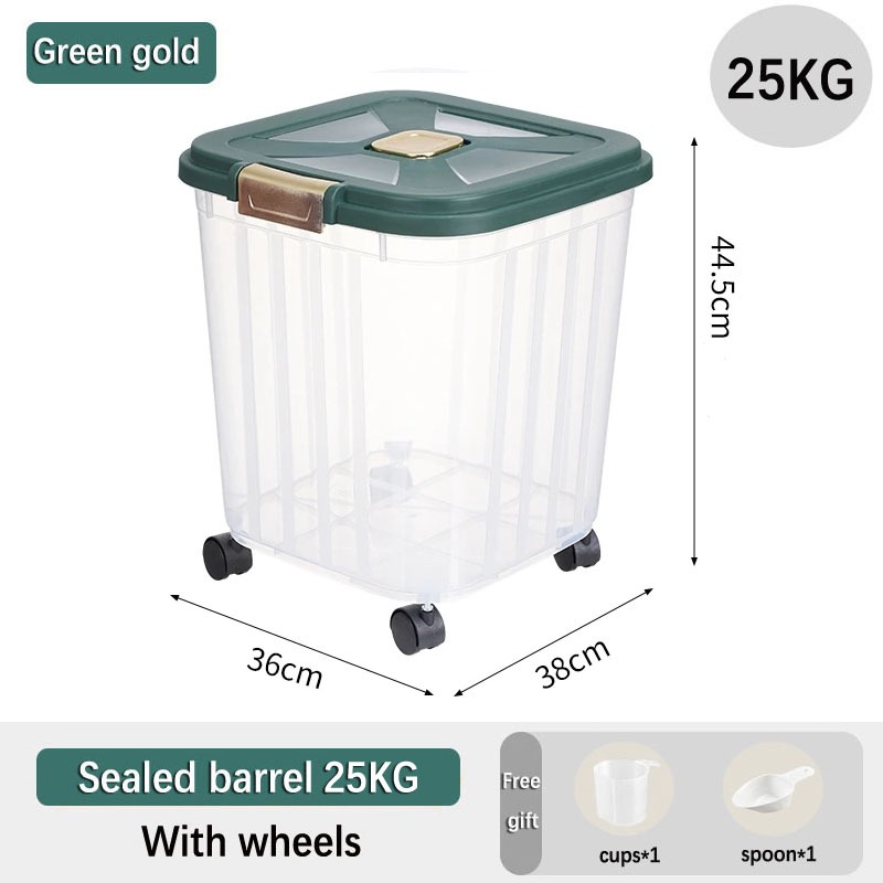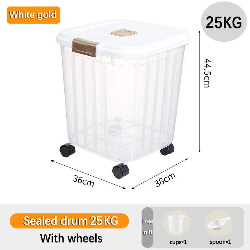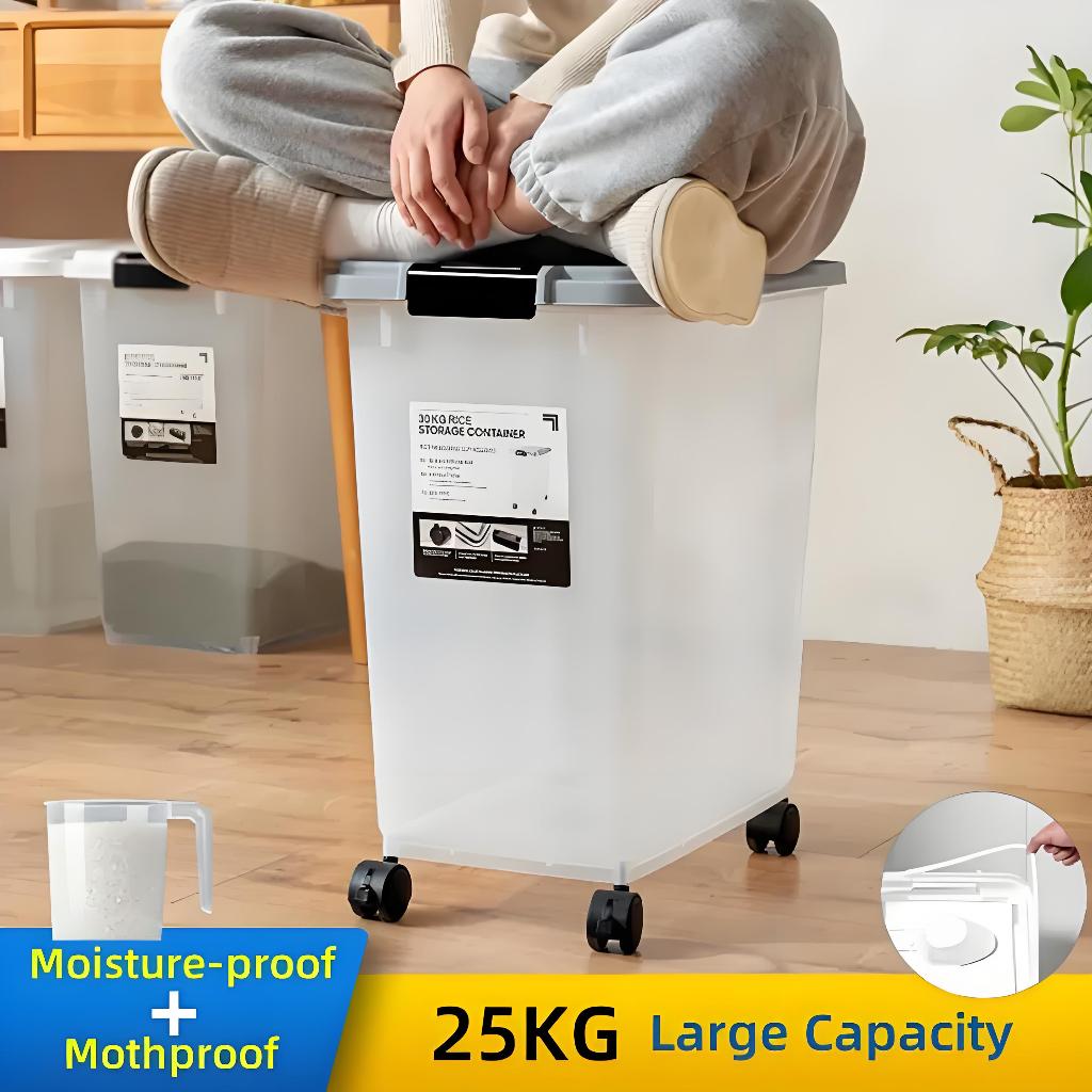 25KG Rice Dispenser Rice Container w/cup & wheels Kitchen StorageAirtight InsectProof Rice Bucket
