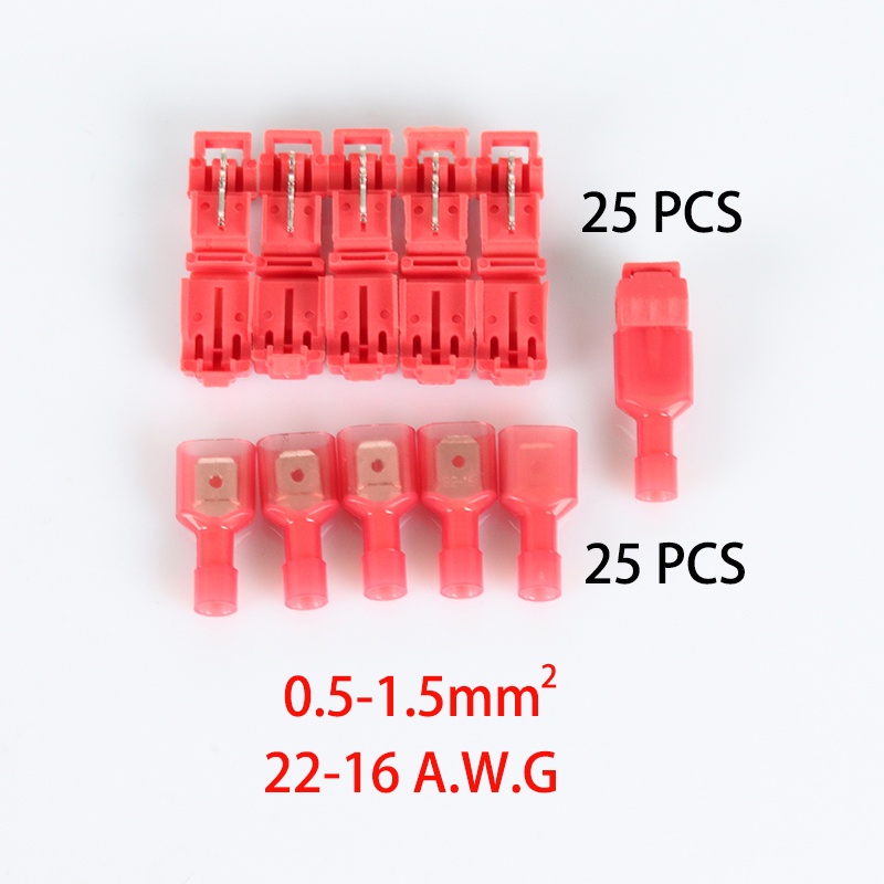25PCS T Tap Type Electrical Connector Crimp Terminals Fast Wire Terminal Connectors Splice Insulated