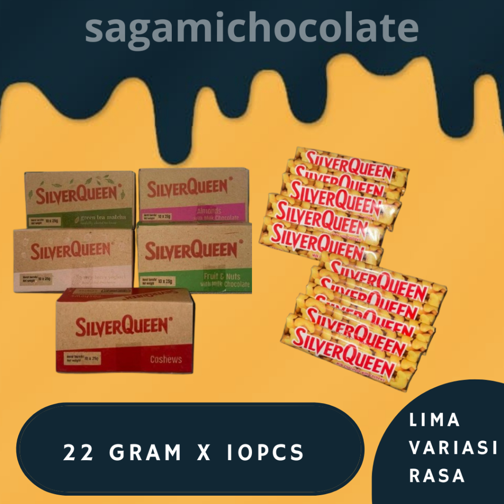 SILVERQUEEN 22GR (BOX contains 10 PCS) - SILVER QUEEN Cashew CHOCOLATE Almond/ Green Tea/ YogHurt Very Berry/ (BOX)
