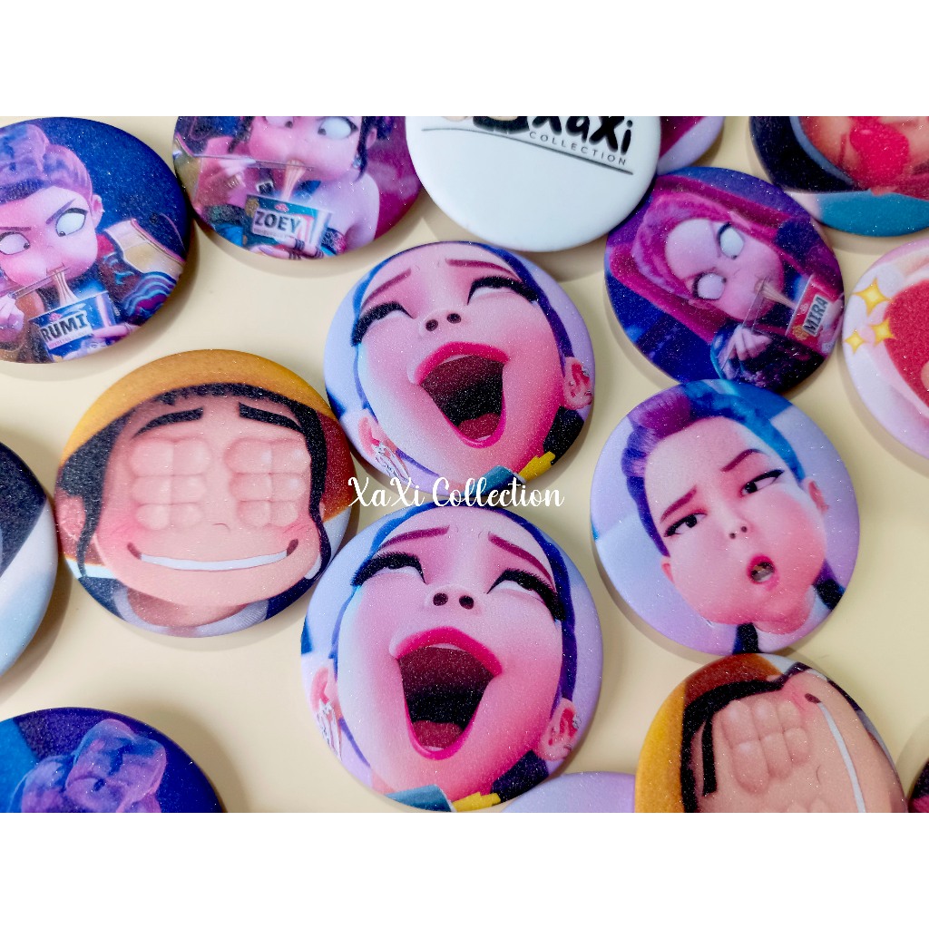 25mm Huntrix Funny Faces Kpop Demon Hunters Button Pins | Zoey Rumi Mira