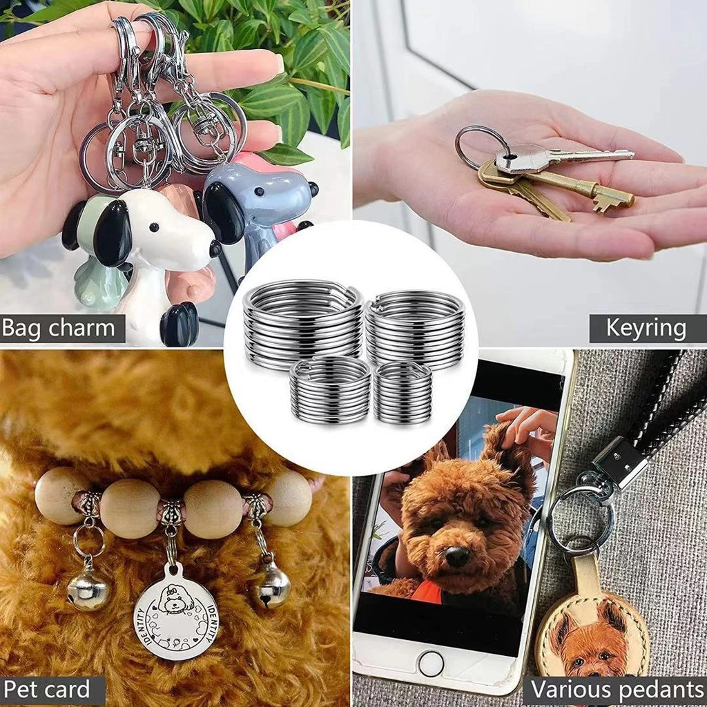 25mm Round Flat Key Holder - Round Flat Polished Silver Keyring - DIY Jewelry Making Split Keychain