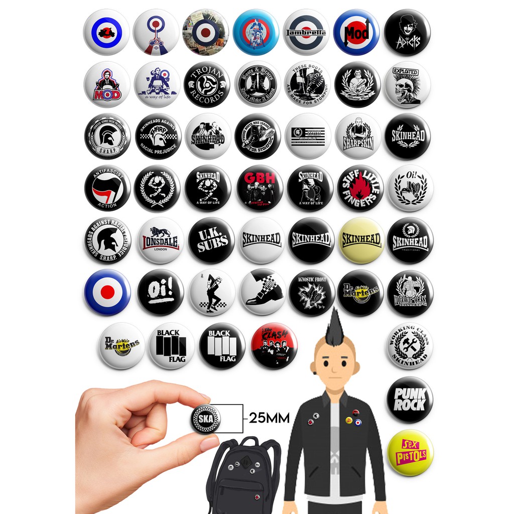 25mm Small Button Badge Pin Skinhead Ska II {No Minimum Order} Punk Ska Rock Metal Oi