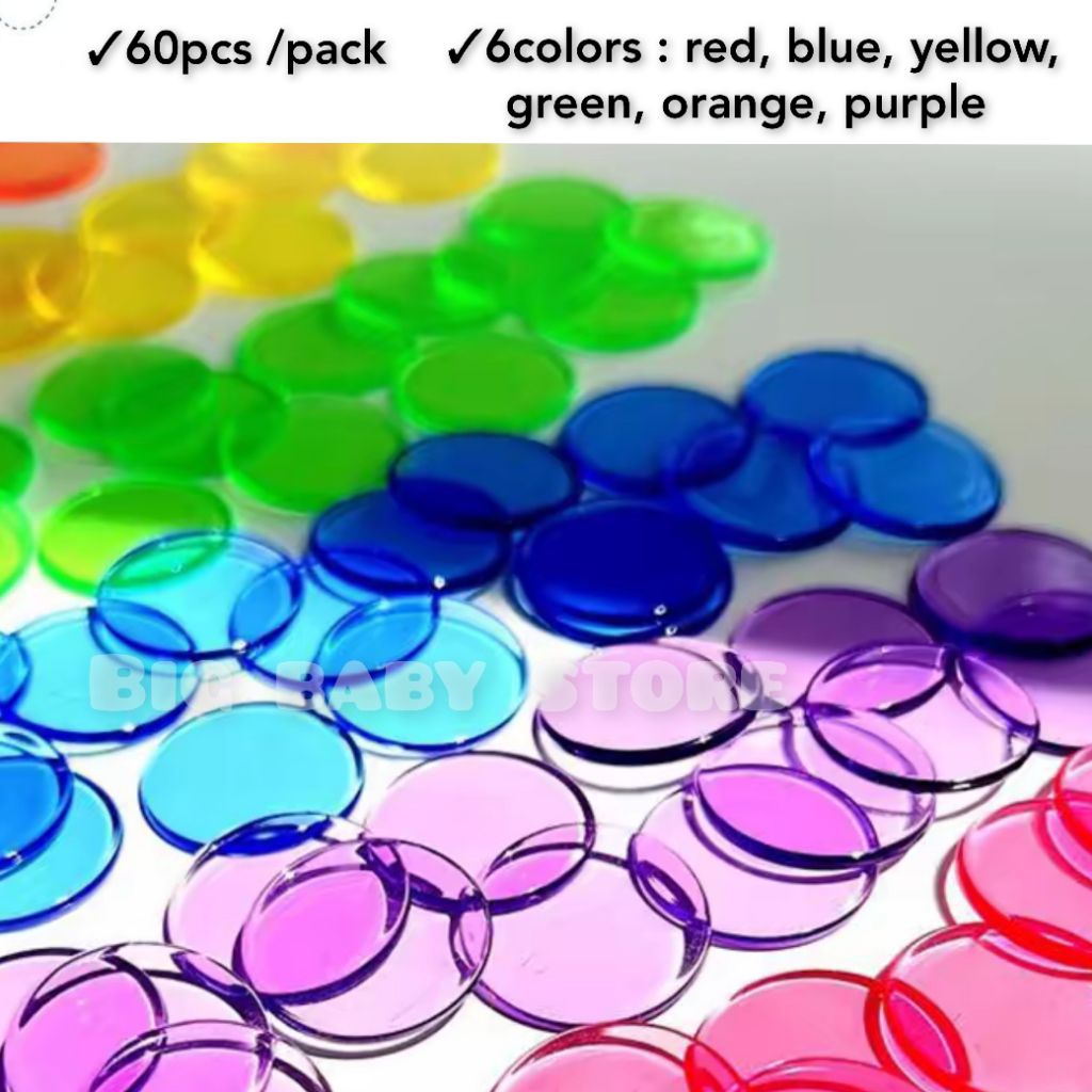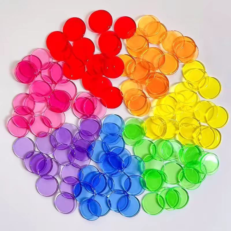 25mm Transparent Colored Round Chip Plastic clear Counting Chips Math Toys Bingo Chips