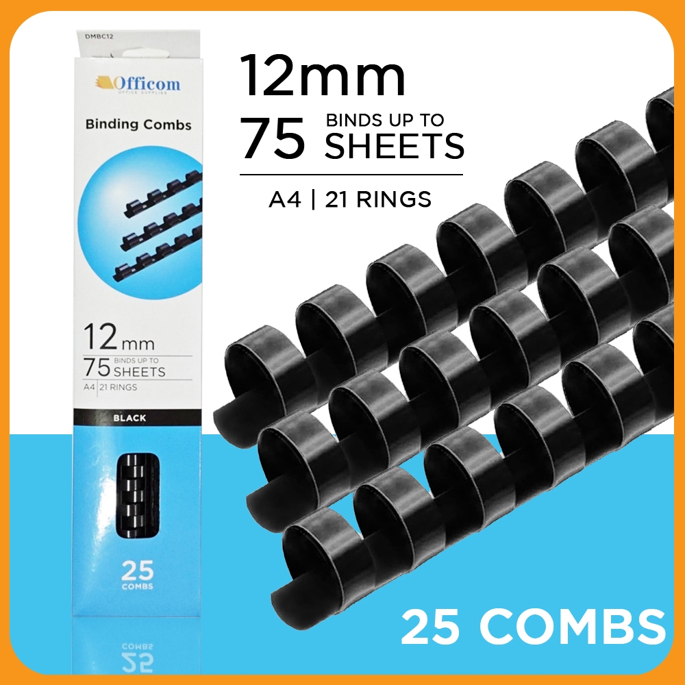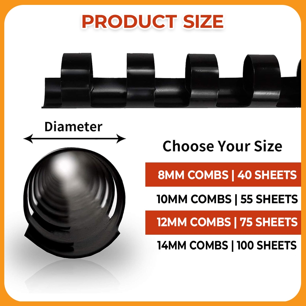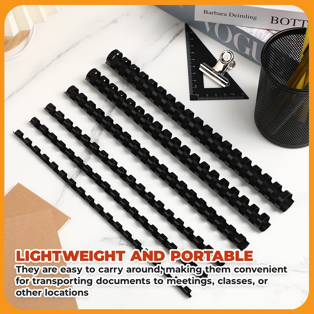 25pcs A4 Plastic Ring Binder Comb 21 Holes PVC Black [8mm/10mm/12mm/14mm]