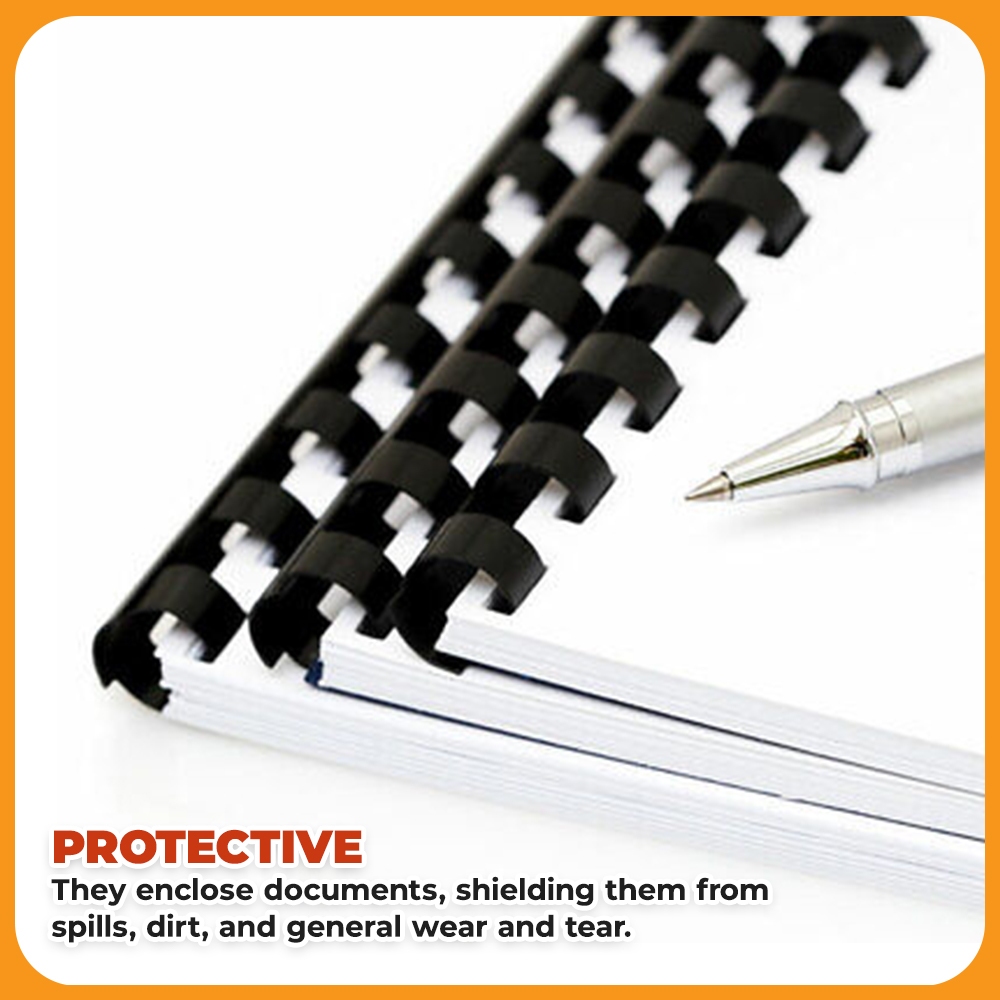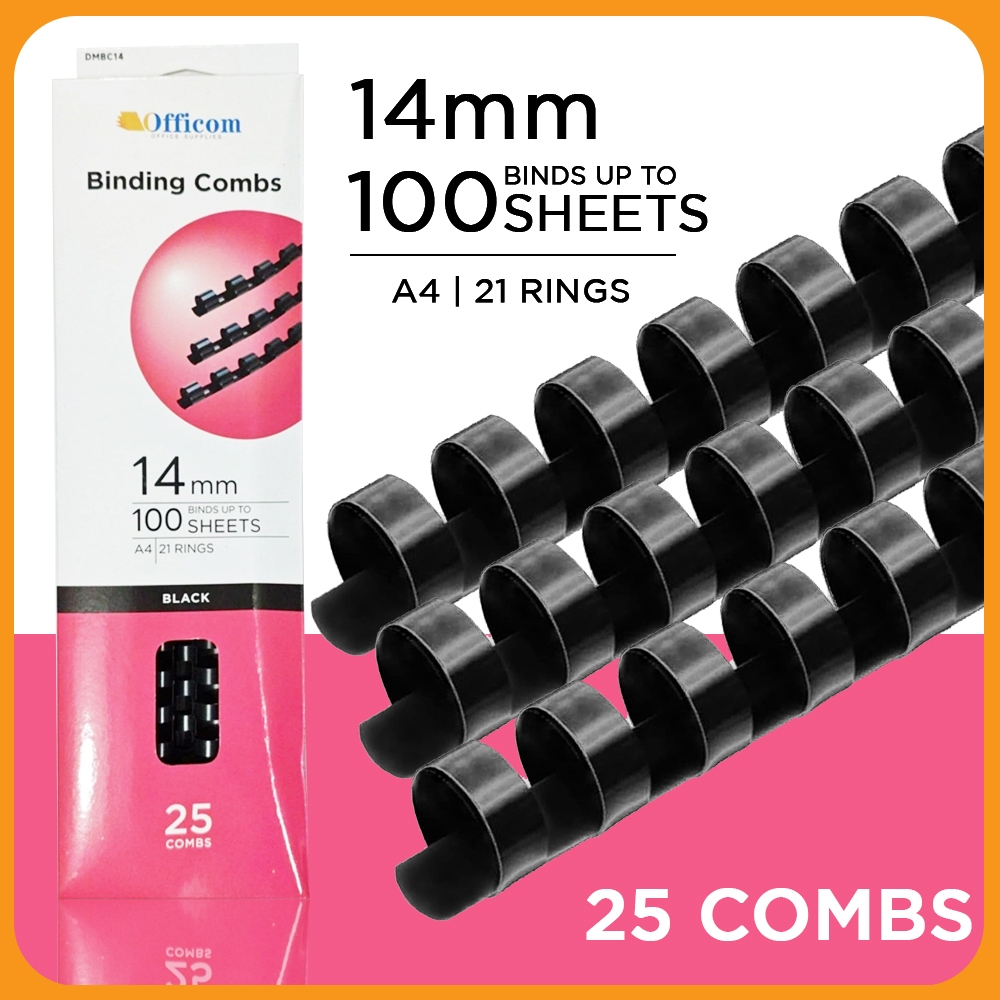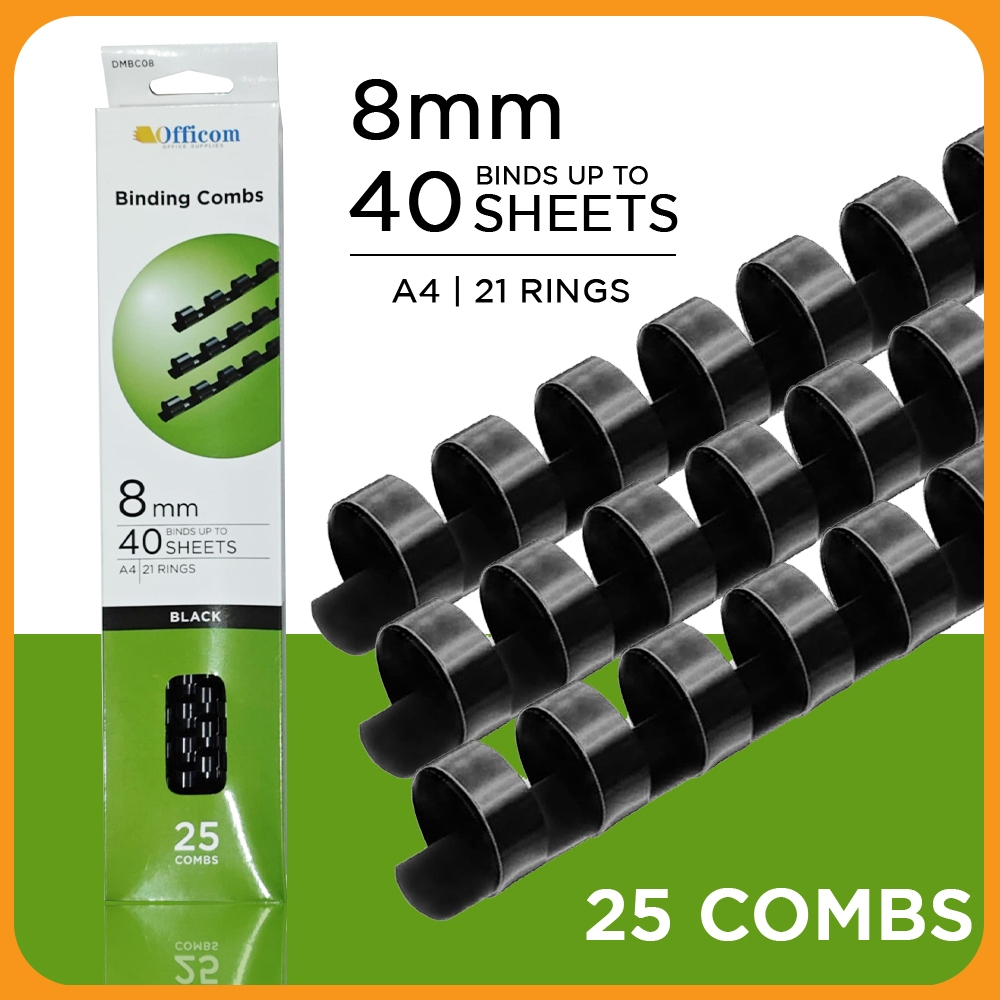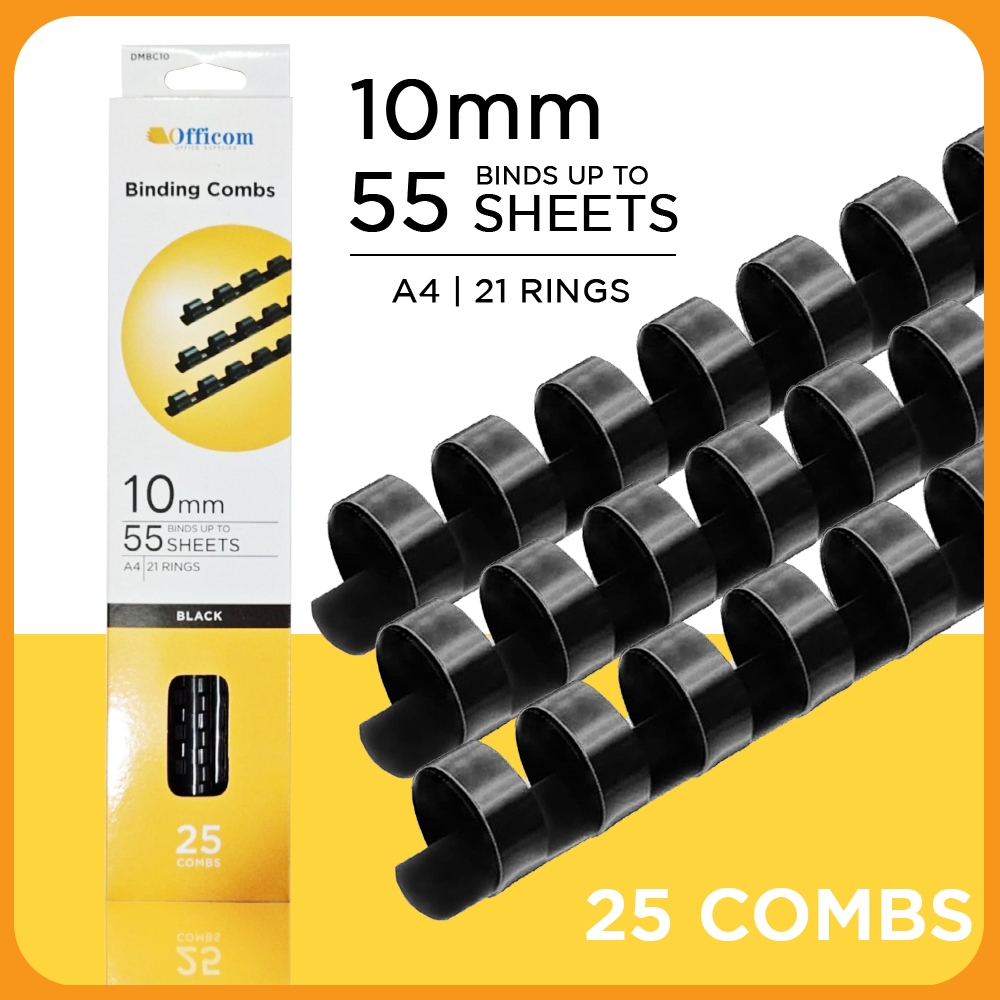 25pcs A4 Plastic Ring Binder Comb 21 Holes PVC Black [8mm/10mm/12mm/14mm]