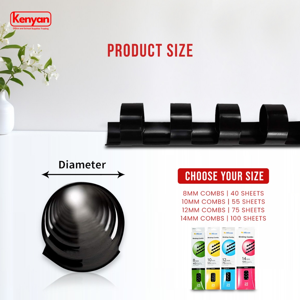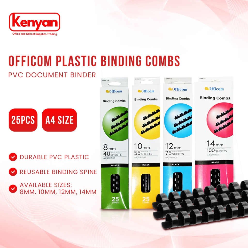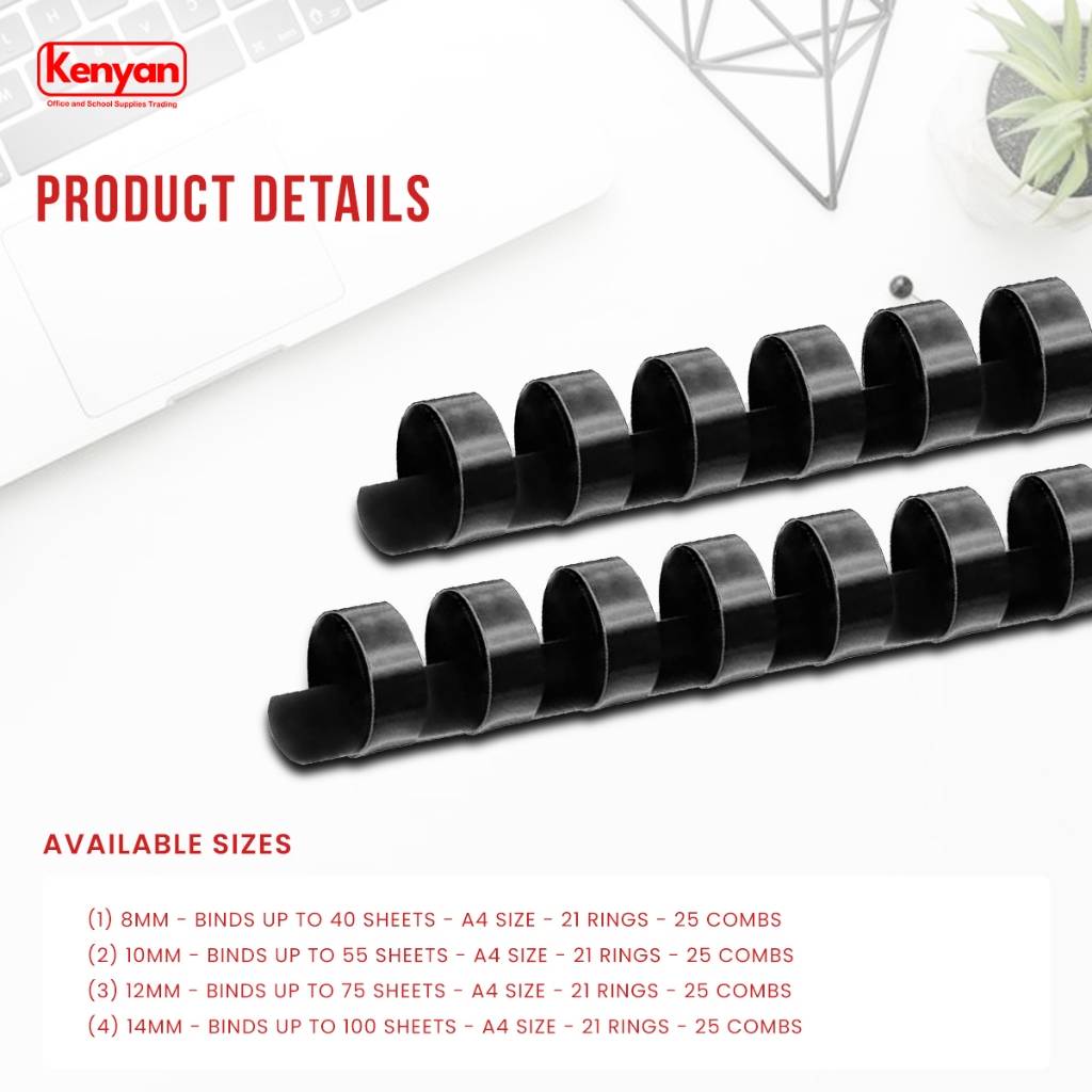 25pcs A4 Binder Comb Plastic Ring 21 Hole PVC Black Document Binding 8mm 10mm 12mm 14mm