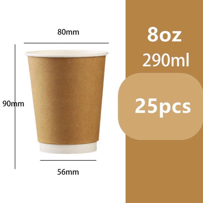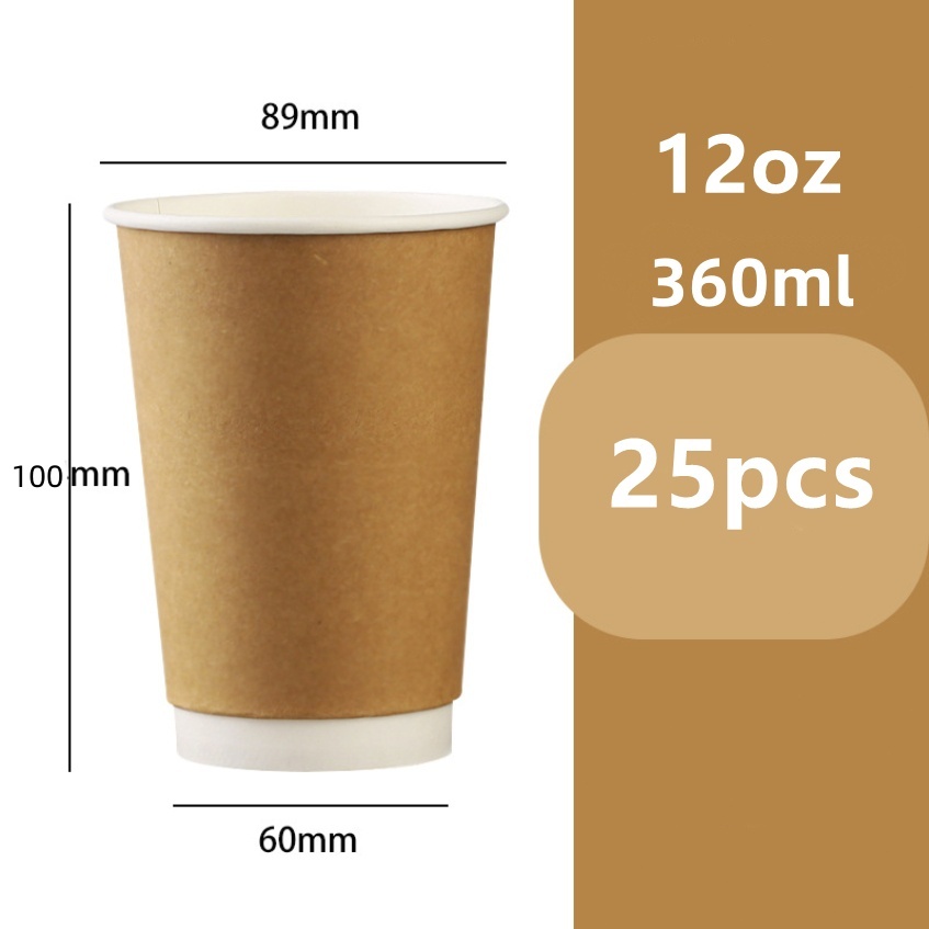 25pcs Double Walled Coffee Cups Paper Cup with Optional Lids Coffee Paper Cup