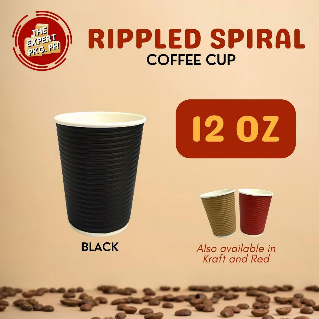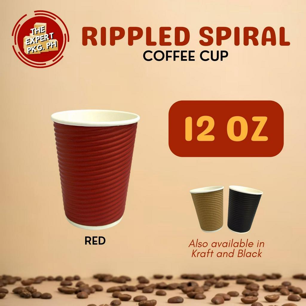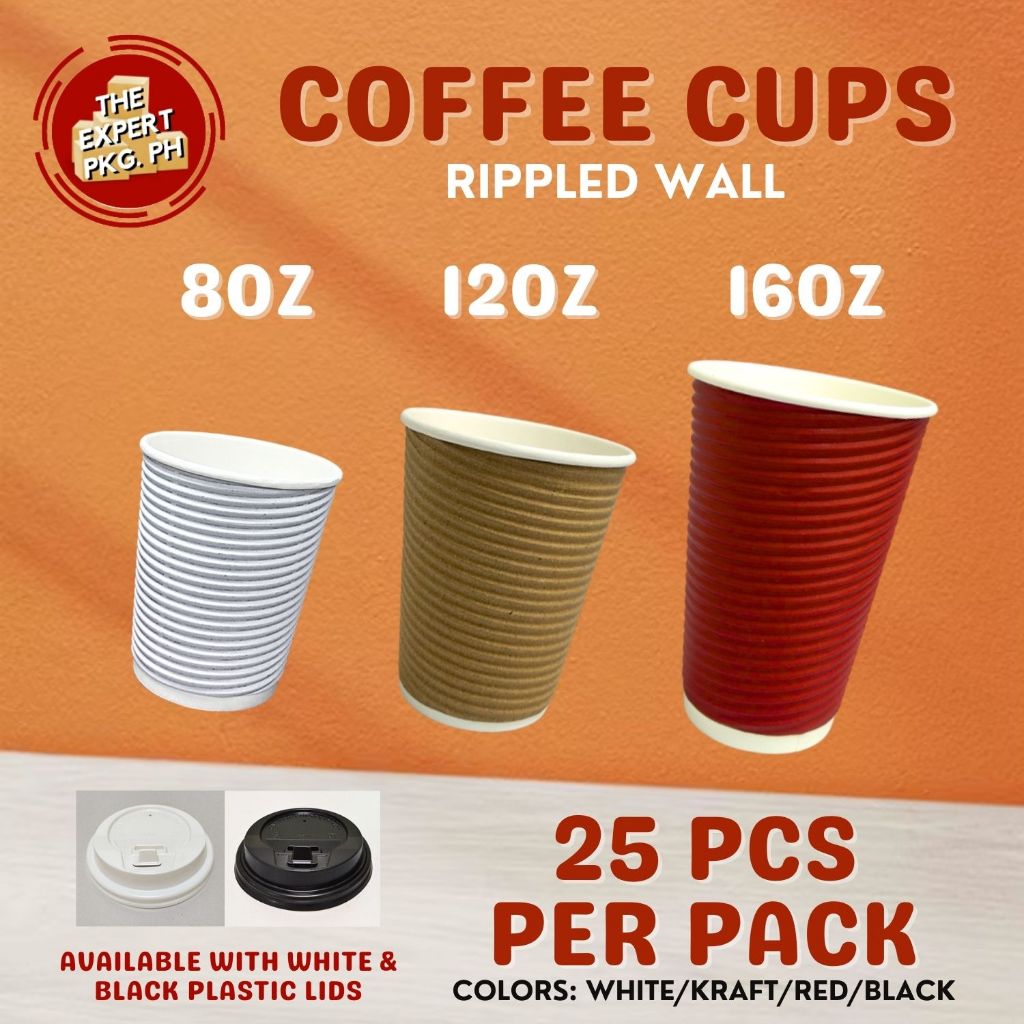 25pcs - Rippled Wall Coffee Cup 8oz 12oz 16oz - Black | Gray | Kraft | Red ( With Lid or W/o Lid )