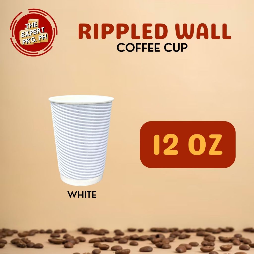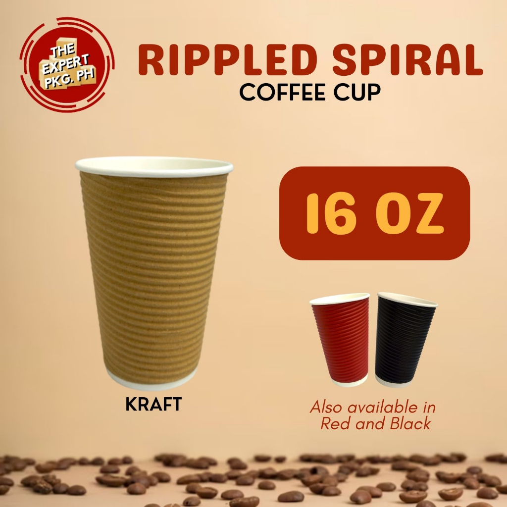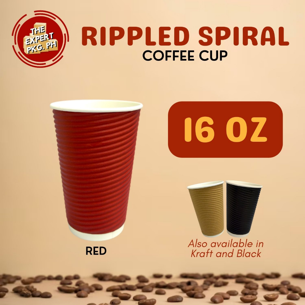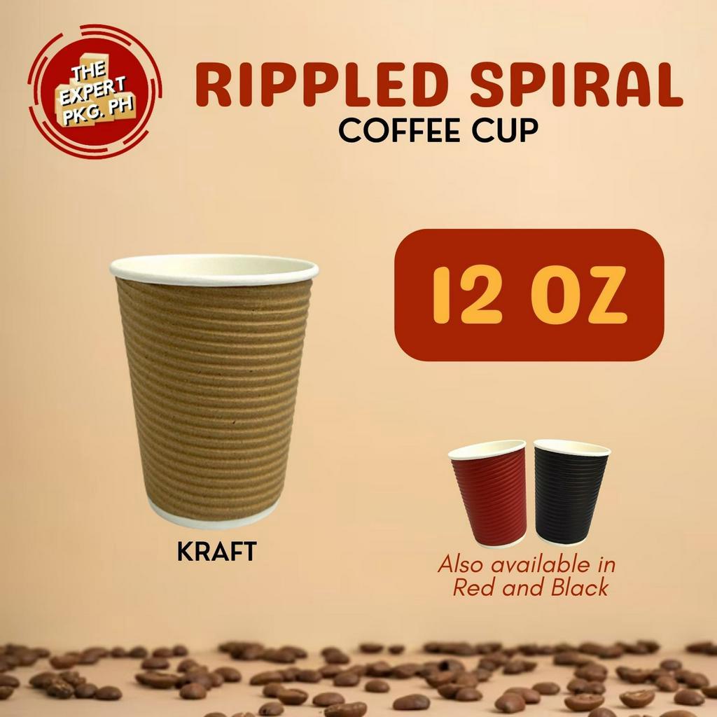 25pcs - Rippled Wall Coffee Cup 8oz 12oz 16oz - Black | Gray | Kraft | Red ( With Lid or W/o Lid )