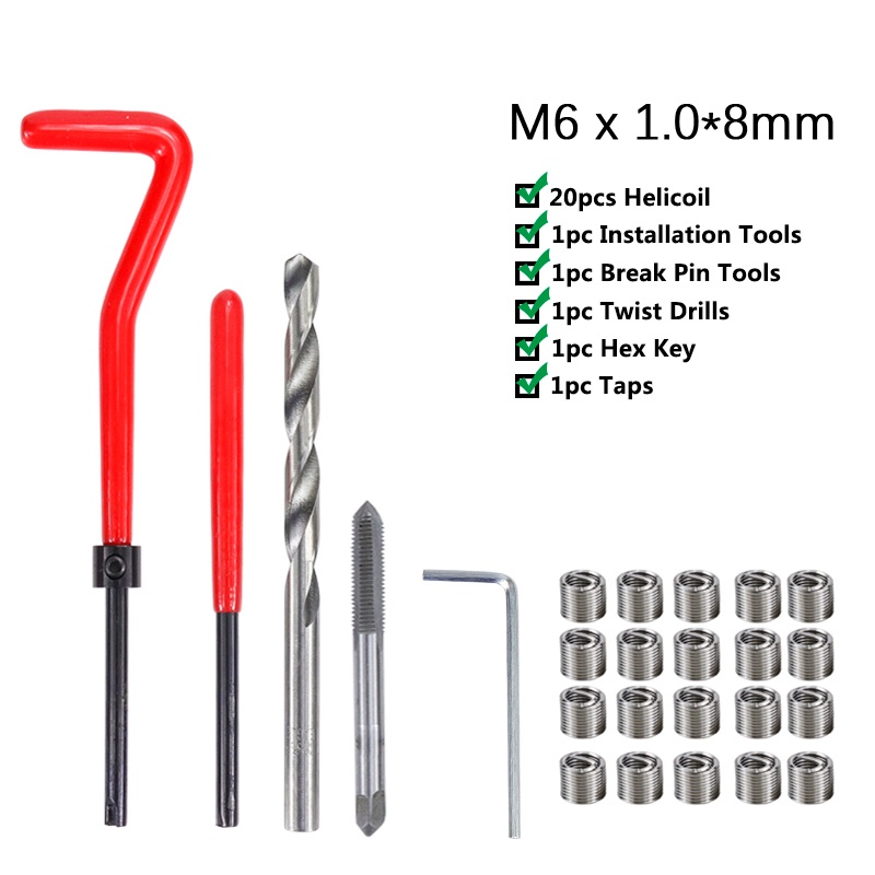 25pcs Thread Repair Tool Kit M6 Carbon Steel Metric Thread Repair Insert Kit