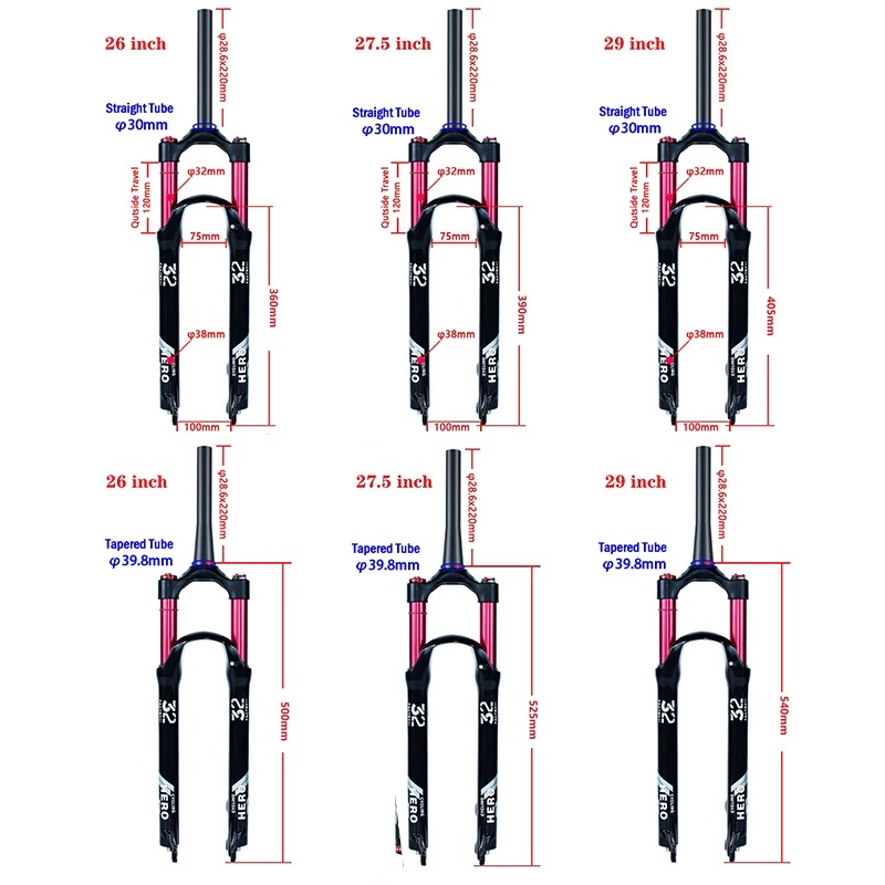 26/27.5/29er MTB Suspension Air Fork Straight Tapered Tube Bike Fork Magnesium Alloy Accessories