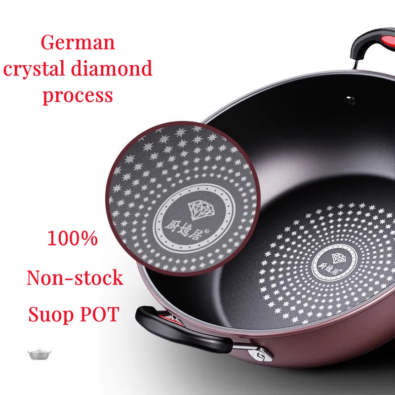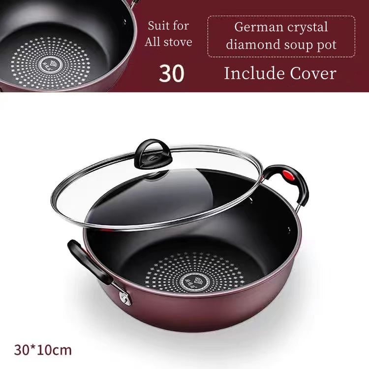 26/28/30cm Thickened Composite Bottom Diamond Non-stick Pot Soup Pot Induction Cooker Gas Stove