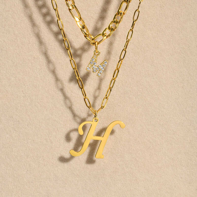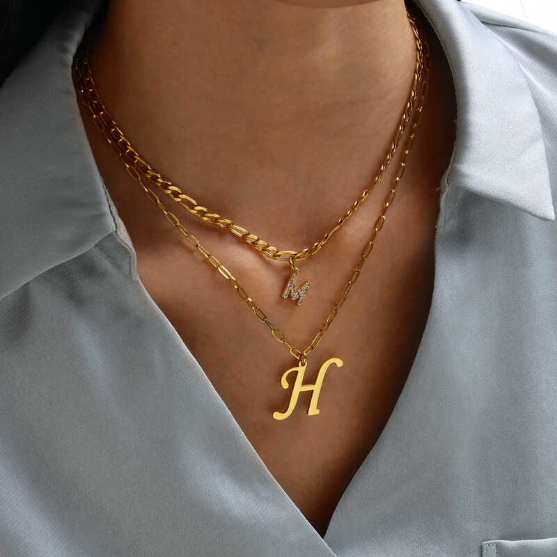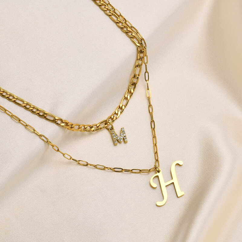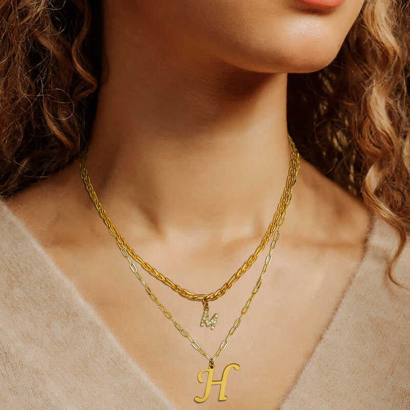 26 Letter Double Layered Necklace Kwintas For Women Girls, Gold Plated Stainless Steel Initial