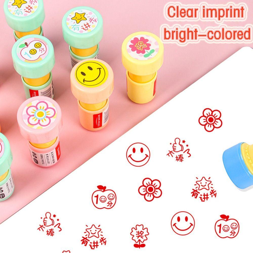 26EDIE Teachers Encourage Stamp, Various Round Student Praise Stamp, Drawing Album Decoration Cartoon DIY Plastic Kids Toys