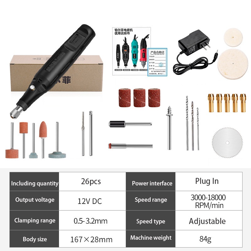 26pcs Electric Drill Set Mini Electric Grinder Power Tools For Polishing Cutting Miling Carving