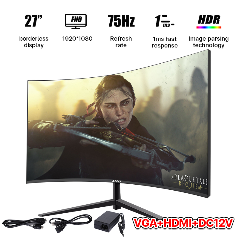 27 Inch HD Monitor PC Screen curved surface 75HZ Computer professional borderless esports display