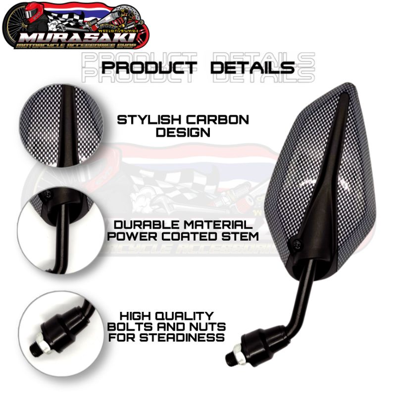 2794 SHORT STEM SIDE MIRROR / LEAF TYPE CARBON SIDE MIRROR / THAI CARBON MINI SIDE MIRROR