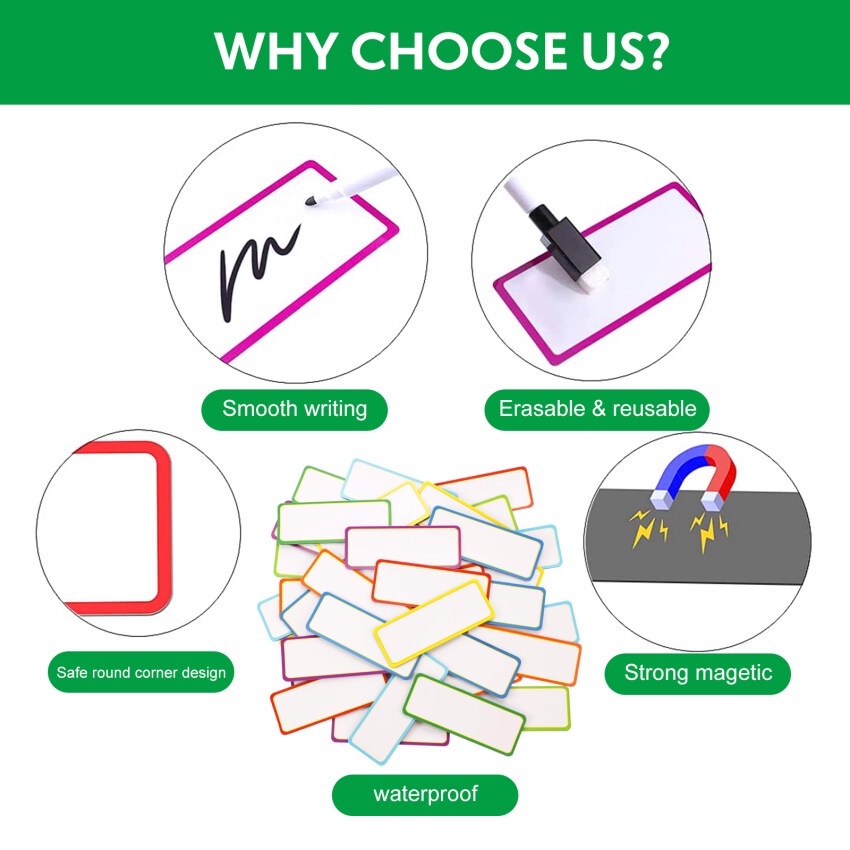 27Pcs Dry Erase Magnetic Labels 3.15*1.18inch Whiteboard Name Tags Round Corner Fridge Magnet