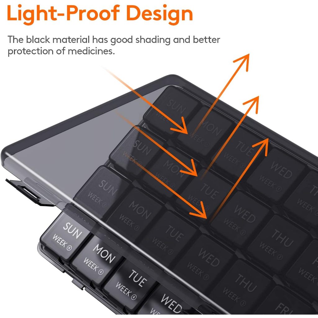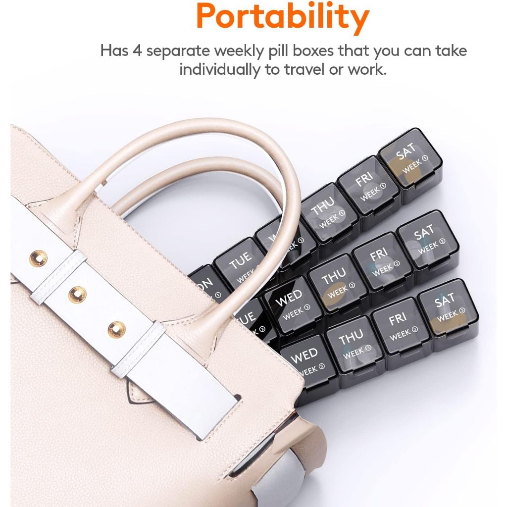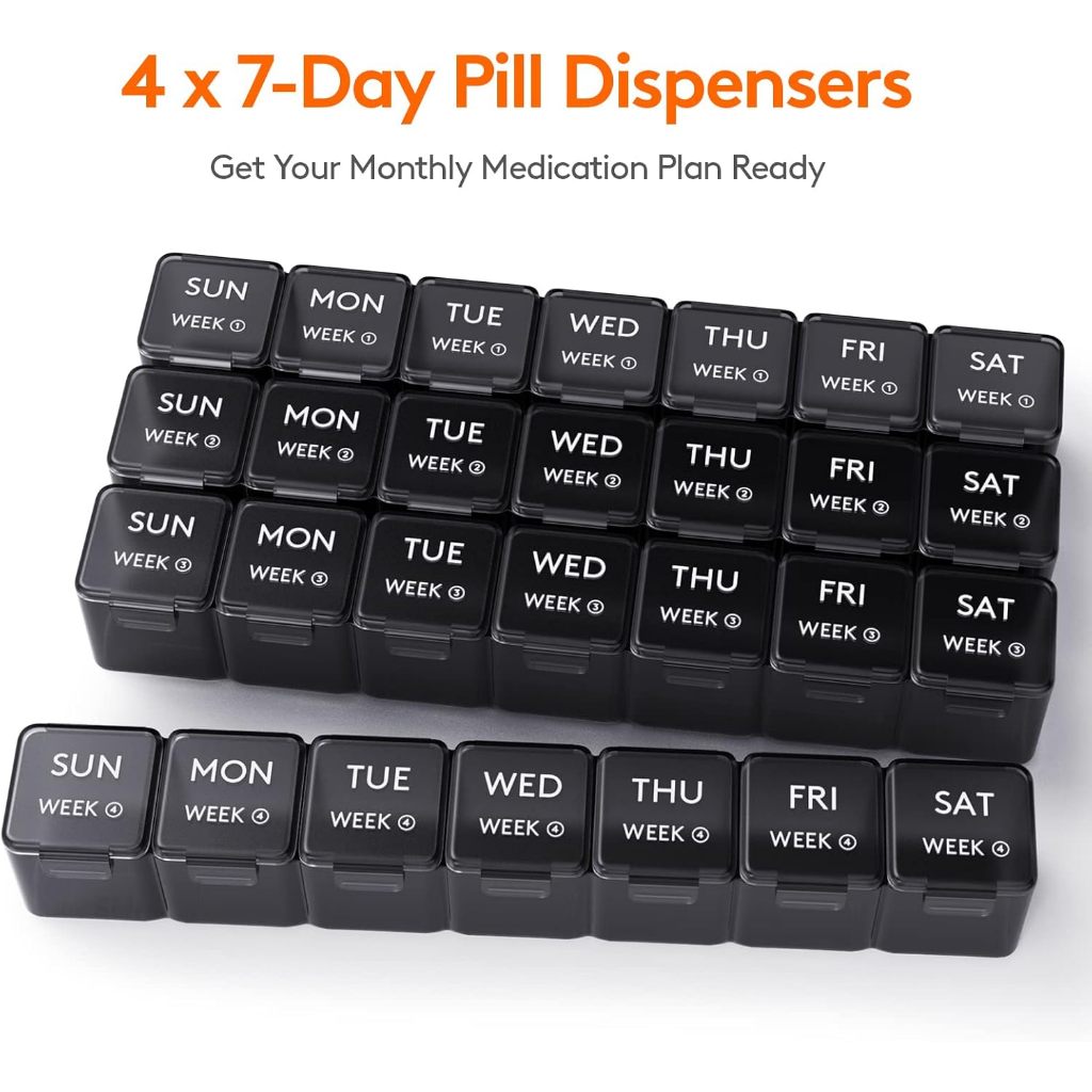 28 Day Pill Box, Monthly Pill Organizer, One Month Pill Case, Large Compartments Medicine Organizer