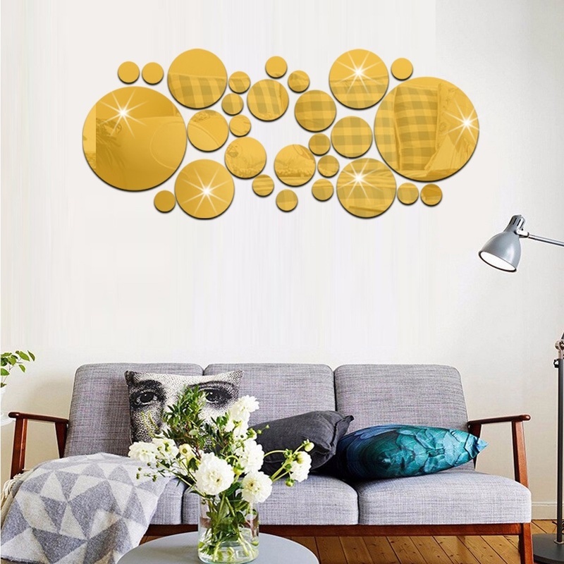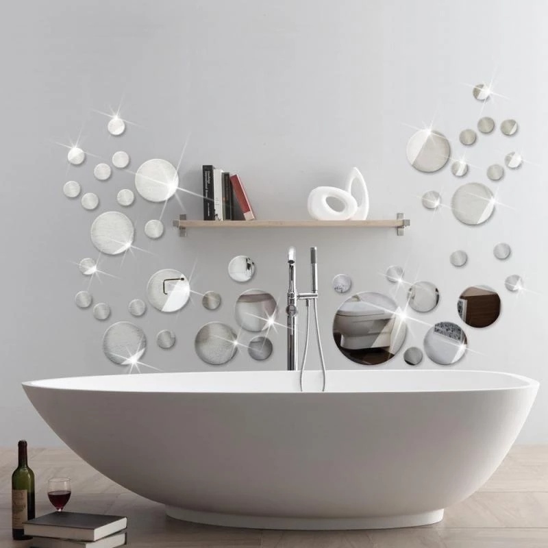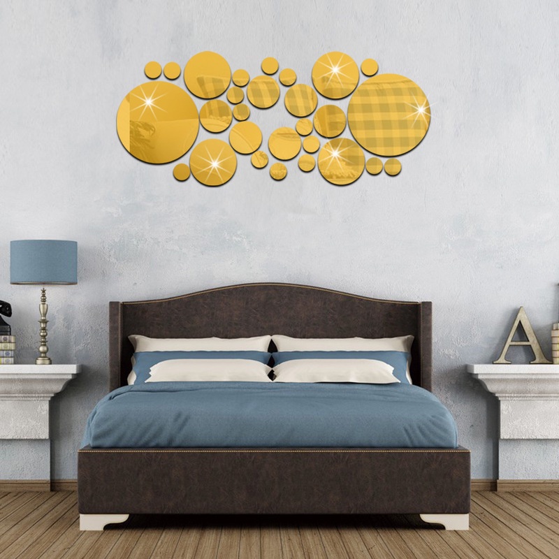 28Pcs/Set Creative Dot Acrylic DIY Self-adhesive Mirror Wall Stickers / Home Bathroom Decor Wallpaper / Wall Decal Stickers for Living Room Bedroom TV Background