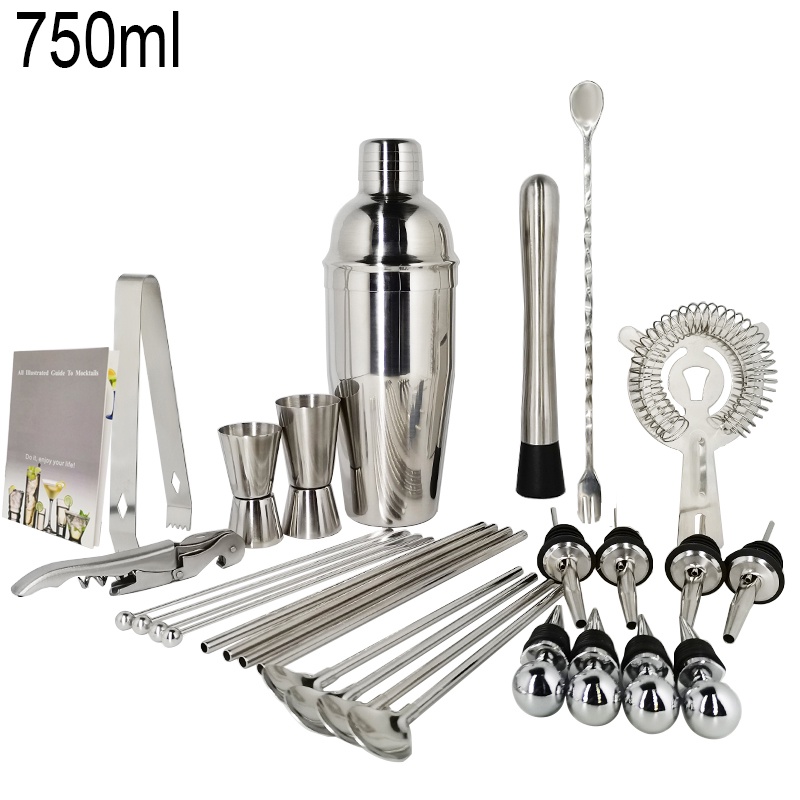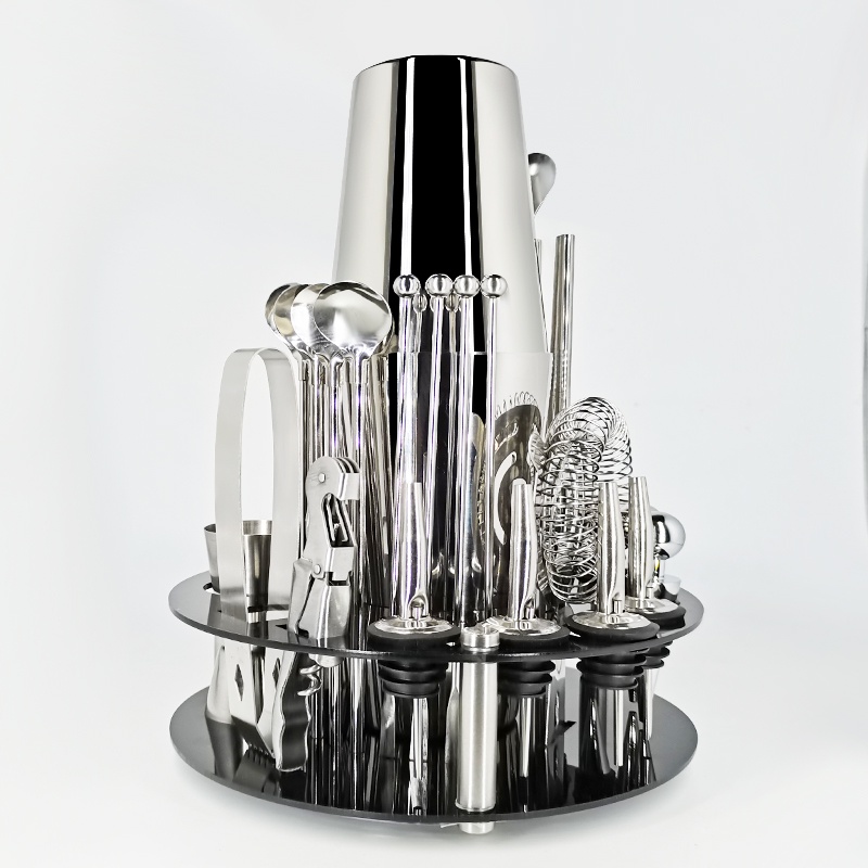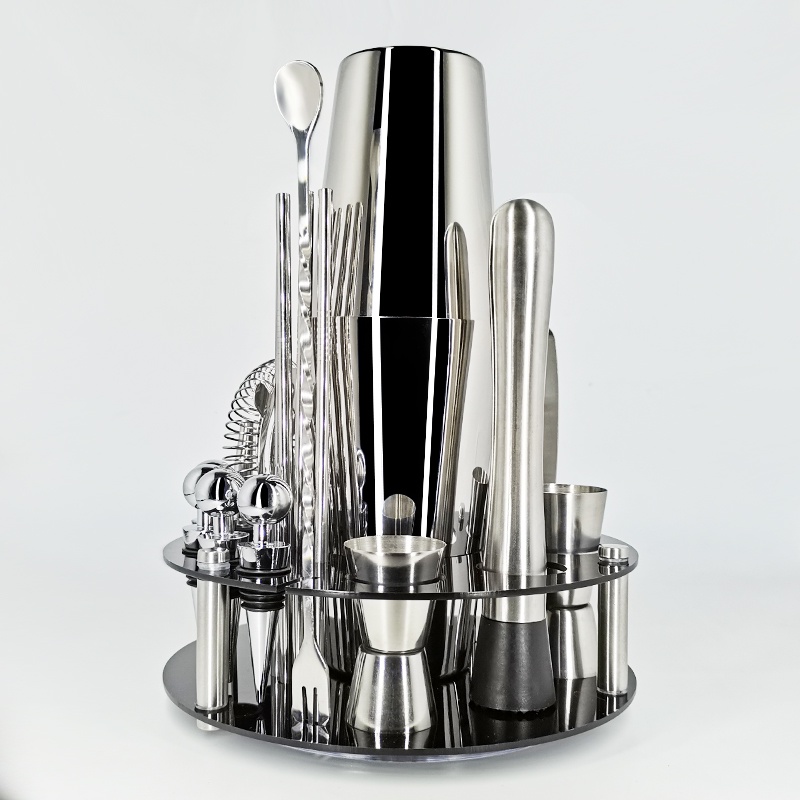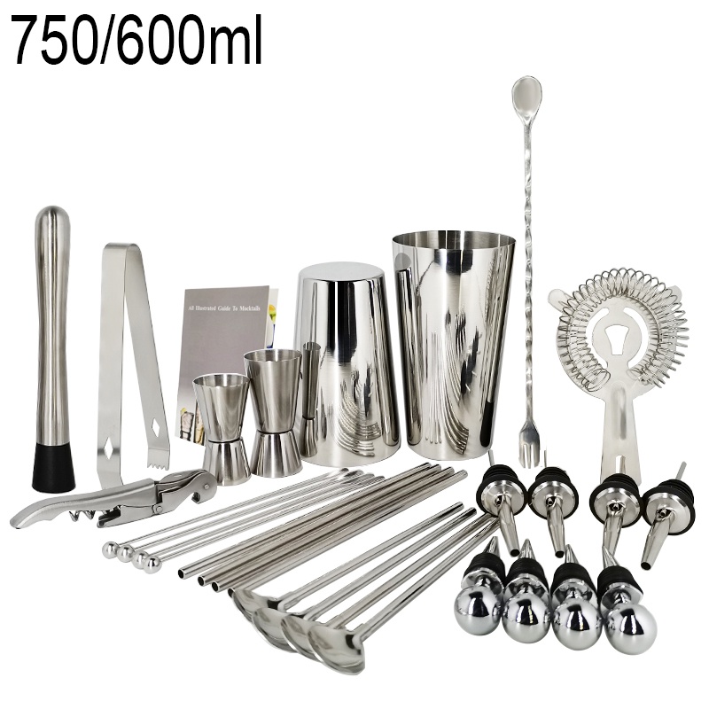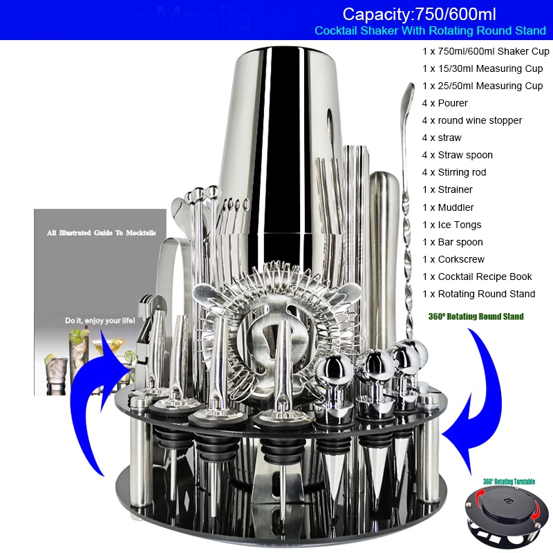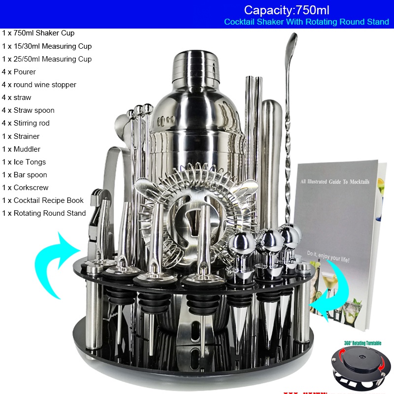 28Piece Bar 750ml Cocktail Shake30Piece 750ml 750/600ml Stainless Steel Cocktail Shaker Set with 360 Rotating Stand, Bar Tools Bartender Set As Best Gift Suitable for Familyr Set w