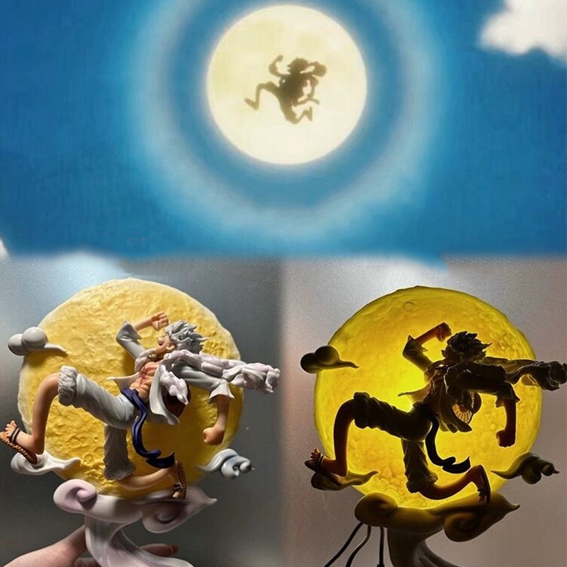28cm One Piece Figure Nika Monkey D Luffy Run Moon Led Night Light Action Figure Statue Model Doll Collection Christmas Toys